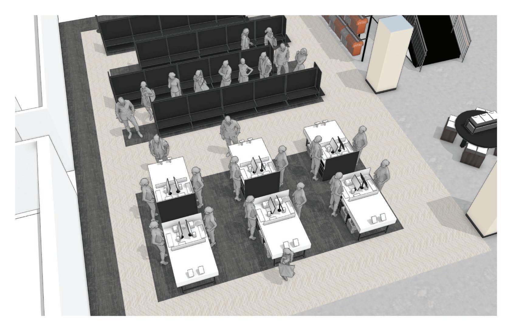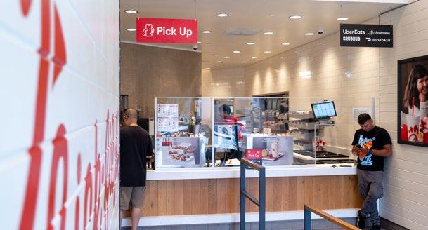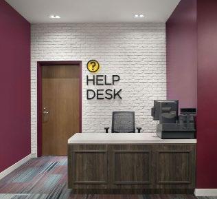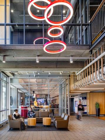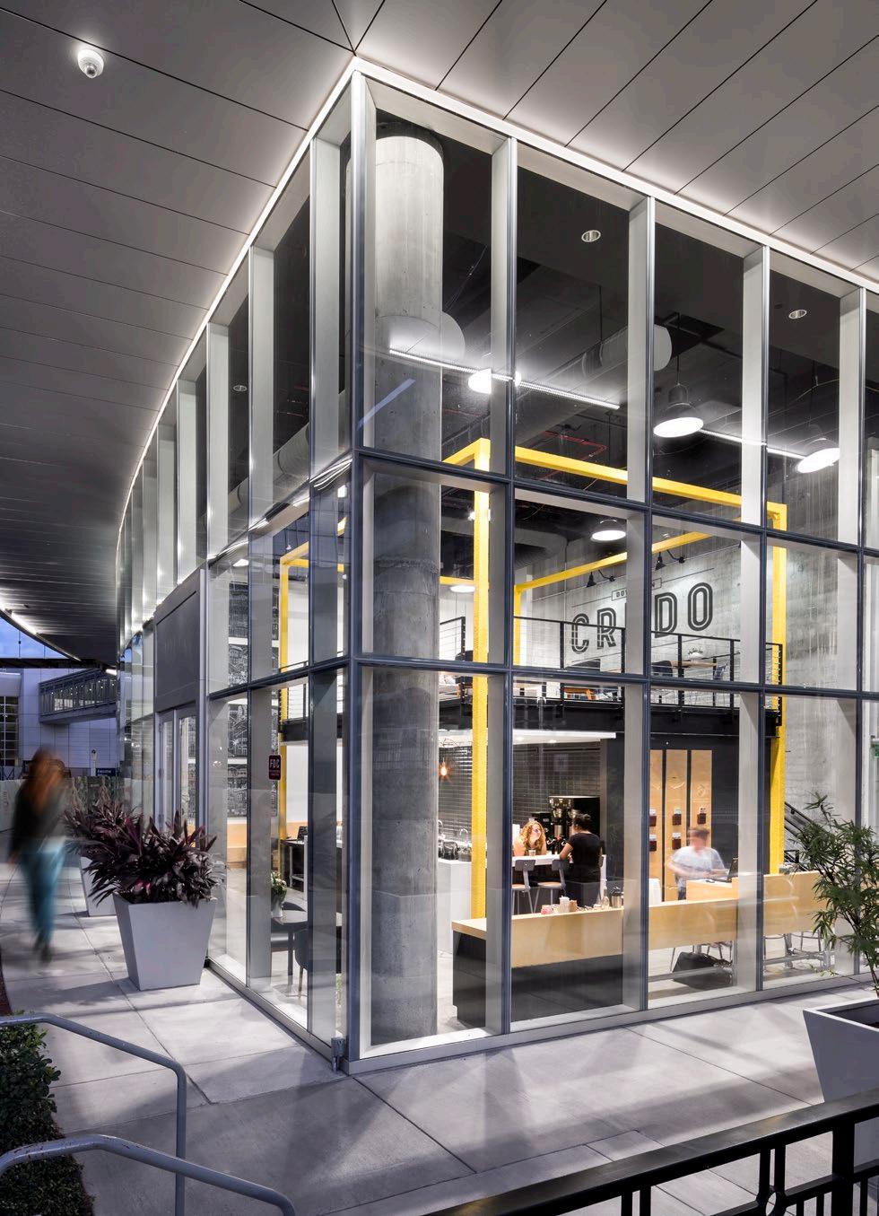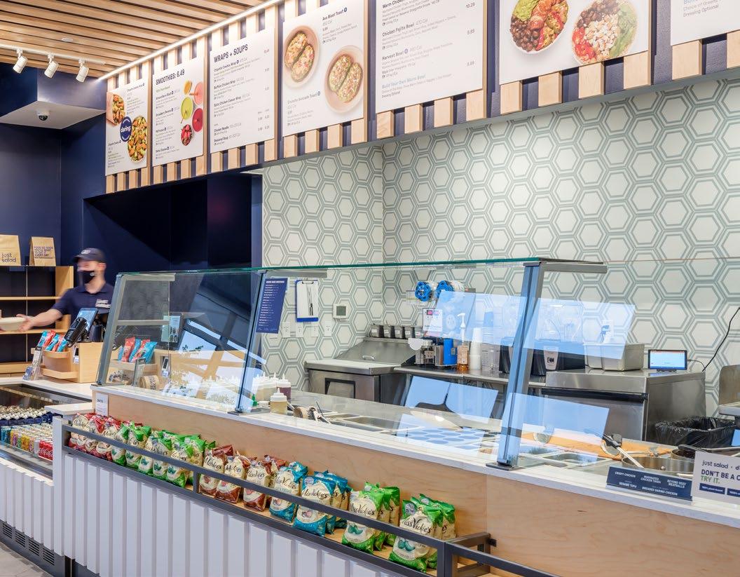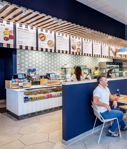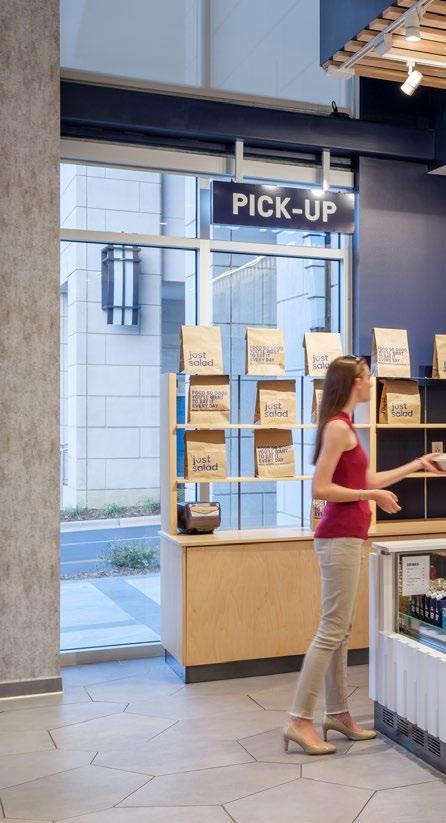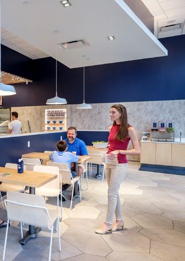Located in the heart of a healthcare village, this coffee shop incorporates a “name your price” menu to support their community of coffee growers and incubate local start-up businesses — a missiondriven approach that aligns naturally with today’s Gen Z students focused on social impact and entrepreneurship. The highly visible 20’x20’x20’‘cube within a cube’ concept provides a mezzanine space for visitors to dwell or host events while creating a racetrack below for faster paced foot traffic.