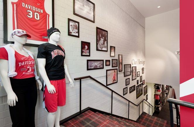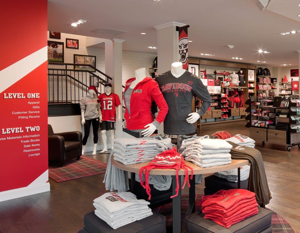 Davidson College acquired an existing, campusadjacent, two-story building perfectly positioned for its new campus store. Our strategy focused on bringing the visual excitement of wellknown branded retail to a collegiate setting and merchandising a broad product array to drive retail sales, celebrate the rich heritage and traditions, and unite the town and gown community.