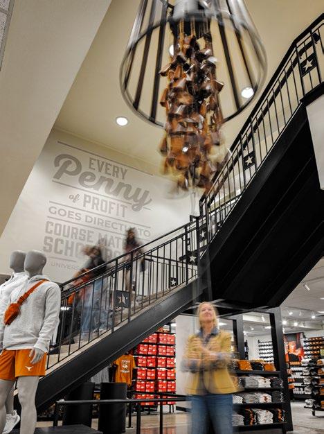 One of the nation’s oldest and largest independent campus store brands is built on purpose. “Every Penny of Profit Goes Directly to Course Material Scholarships” is the Co-op’s promise that makes them such a beloved member of the Longhorn community. To build on this purpose, Little’s design team developed a massive chandelier made of cowbells that guests are invited to ring when donating over $100 to support the Co-op’s purpose.