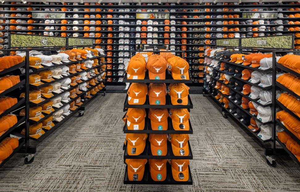 The hat wall at the Co-op is expansive — and with up to 10,000 visitors every game day, the redesign and expansion make it easier for more Longhorns to shop and browse.