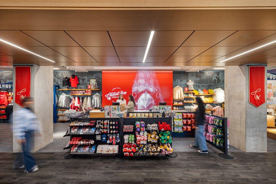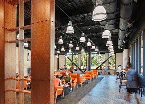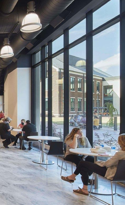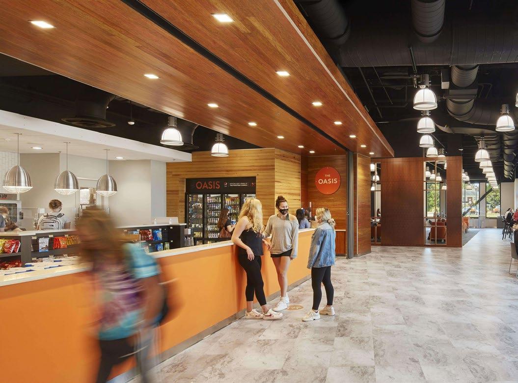 Warm tones soften large open spaces, creating a welcoming atmosphere with plenty of room for activity. Reflecting the desertinspired identity of Campbell, home of the Camels, the student-named spirit shop was rebranded as the Bazaar, adding a unique and meaningful touch to the destination.