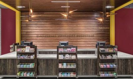 The bookstore creates a dynamic and flexible experience that excites students and visitors. Bloomsburg’s core attributes of “inspired, diverse and engaged” are reflected in this unique combination of spirit shop, bookstore and convenience mart in one. The concept exceeds expectation through double-digit increases in sales and frequency of visits.