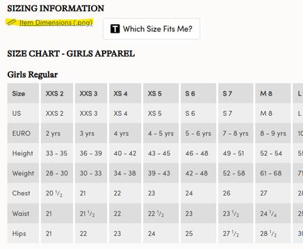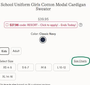 SizeCharts:Givesanapproximategenericmeasurementofanitemforagivensize Theexamplebelow showsthesizechartforgirlsapparelnotthisspecificcardigansweater.