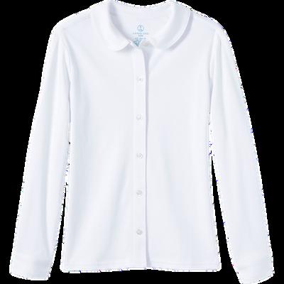 GirlsLongorShortSleevePeterPanCollarPoloShirt(requiredshirtifwornwithskirt) Broadclothbutton-upPeterPancollarshirtmaybewornunderthejumperONLY Colors:BlueorWhite