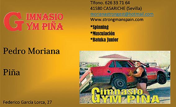 Gimnasio Piña. Regala a nuestra Reina y a nuestro Míster 3 meses gratuitos, y a las Damas y al Míster simpatía, 1 mes gratis. A canjear dentro del año vigente.