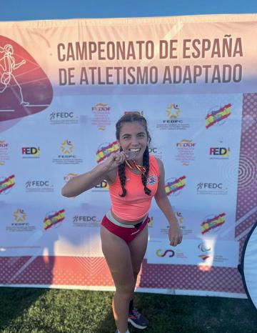 A María Duque González por su participación y logro conseguido en el Campeonato de España Absoluto por Comunidades Autónomas de Atletismo Adaptado 2024 en Guadalajara durante el pasado mes de abril y su debut en el Campeonato de España Absoluto por Clubes de Atletismo para Personas con Discapacidad, celebrado en el mes de junio donde ganó la medalla de bronce en lanzamiento de disco.