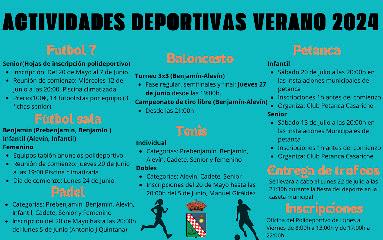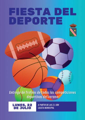 A partir de las 21.30 h. se celebrará la Fiesta del Deporte. Donde se hará entrega de los trofeos de todas las competiciones deportivas del verano. Caseta Municipal.