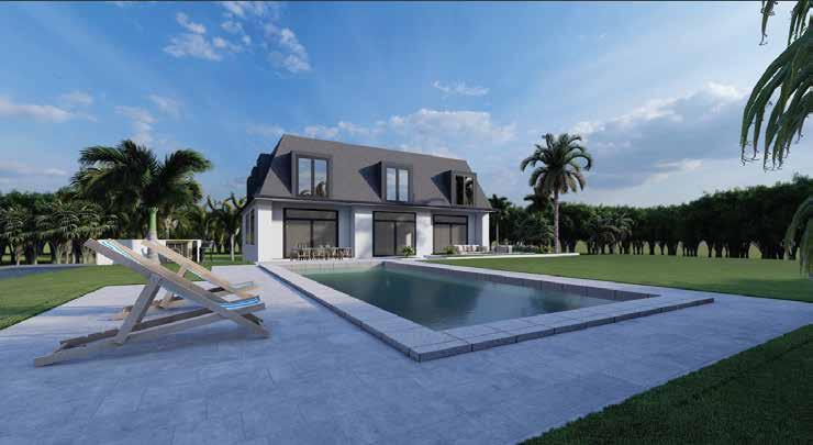 A central design driver was the maximization of natural light and the fluidity between interior and exterior spaces; this is realized through extensive floor-to-ceiling black-framed glazing on the ground floor, which opens the living areas directly onto a paved terrace and a pristine rectangular swimming pool. The rear elevation is dedicated to leisure, featuring a carefully landscaped garden and pool deck that function as an extension of the home's footprint. The front facade creates a dignified arrival experience with a raised entry porch and precise geometric detailing, successfully meeting the client's brief for a modern home that retains the character and craftsmanship associated with high-quality European design.