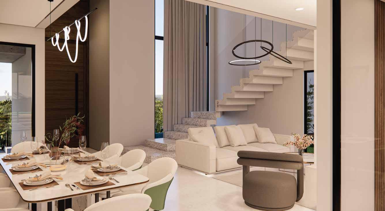THIS PROJECT DETAILS THE COMPREHENSIVE ARCHITECTURAL AND INTERIOR DESIGN OF A TWO-STORY CONTEMPORARY LUXURY RESIDENCE, DEFINED BY ITS FOCUS ON BRIGHT, OPEN-PLAN SPACES AND A HIGHLY REFINED MATERIAL PALETTE. THE EXTERIOR ARCHITECTURE EMPLOYS A CLEAN, CUBIC FORM WITH EXTENSIVE GLAZING AND FLAT ROOFLINES, UTILIZING A HIGH-CONTRAST AESTHETIC ACHIEVED THROUGH A MIX OF WHITE STUCCO AND DARK WOOD OR STONE CLADDING. THE INTERIOR IS CHARACTERIZED BY A SLEEK, MODERN MINIMALISM, FEATURING AN OPEN-CONCEPT LIVING AND DINING AREA THAT MAXIMIZES NATURAL LIGHT AND VIEWS OF THE EXTERIOR LANDSCAPE. KEY INTERNAL FEATURES INCLUDE A MINIMALIST STAIRCASE THAT ACTS AS A SCULPTURAL ELEMENT, AND A SOPHISTICATED, NEUTRAL COLOR SCHEME THROUGHOUT THE SOCIAL ZONES AND PRIVATE BEDROOMS, ENSURING A CALM, COHESIVE FLOW. FURTHER LUXURY IS EVIDENT IN THE BATHROOMS, WHICH UTILIZE LARGE-FORMAT MARBLE-EFFECT TILING, CUSTOM FLOATING VANITIES, AND BACKLIT MIRRORS TO CREATE SPA-LIKE RETREATS. THIS RESIDENCE SUCCESSFULLY DELIVERS A HIGHLY MODERN, FUNCTIONAL, AND LIGHT-FILLED ENVIRONMENT TAILORED FOR HIGH-END CONTEMPORARY LIVING.