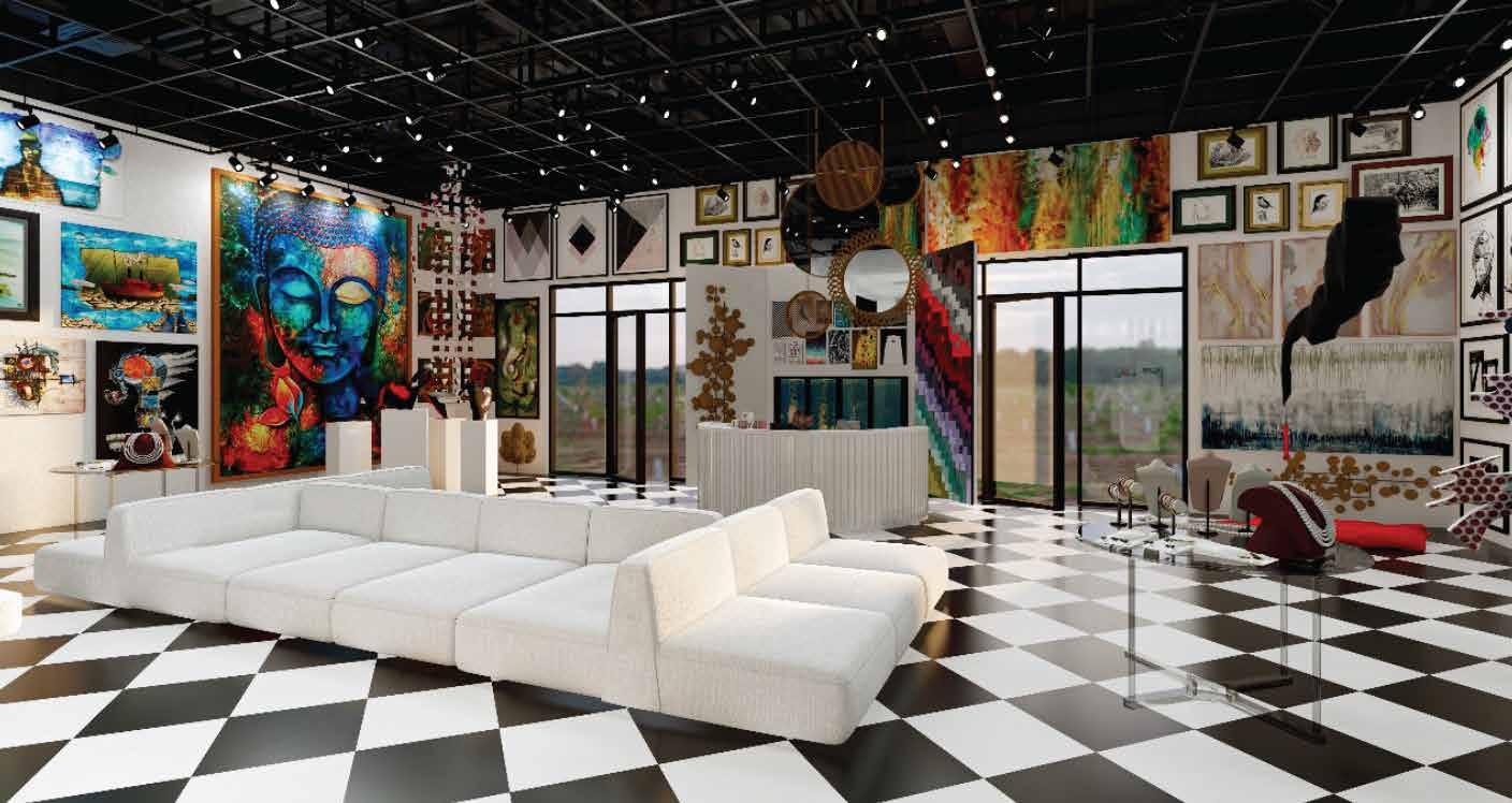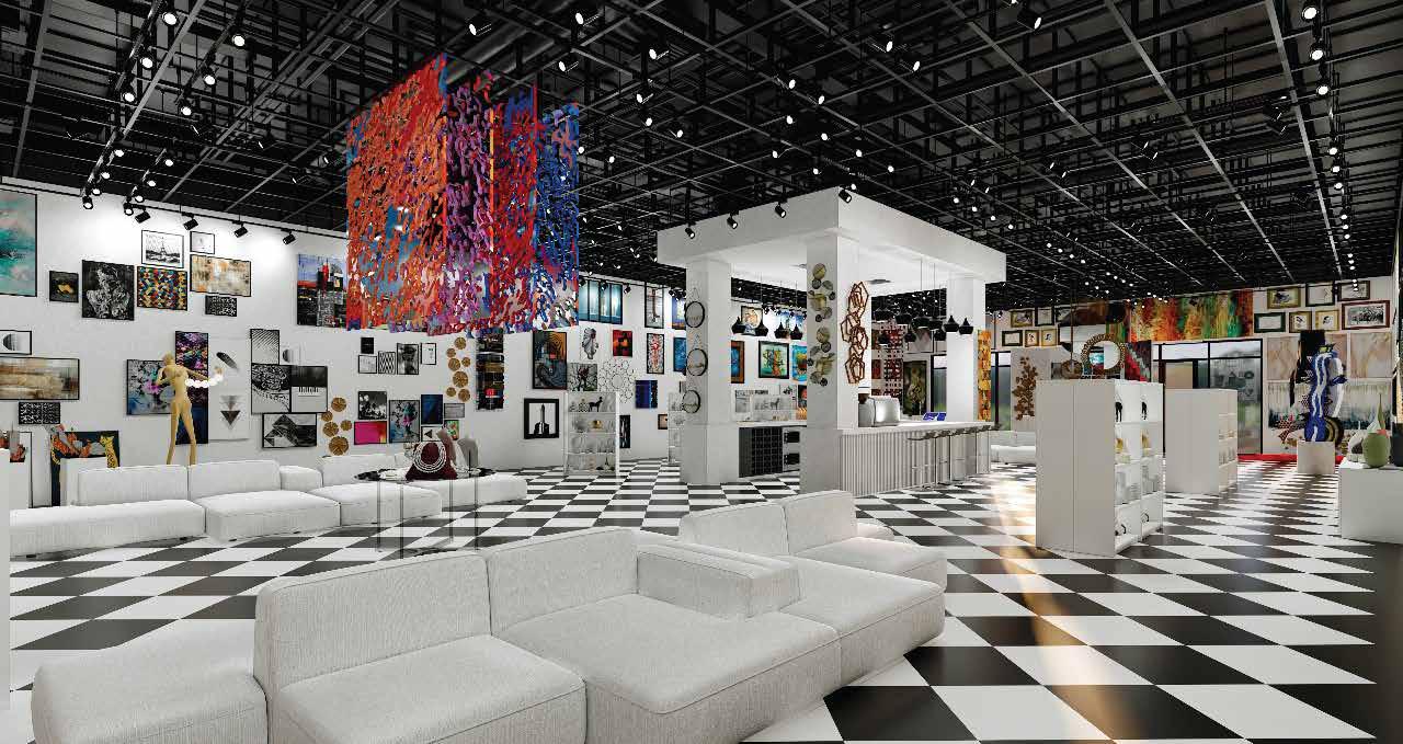 This project explores a contemporary interior concept for POSH Art Gallery (USA), focusing on the relationship between spatial design and artistic display. The layout was developed to create a fluid visitor experience, using clean geometries, curated lighting, and controlled material contrast to enhance the presentation of artwork.