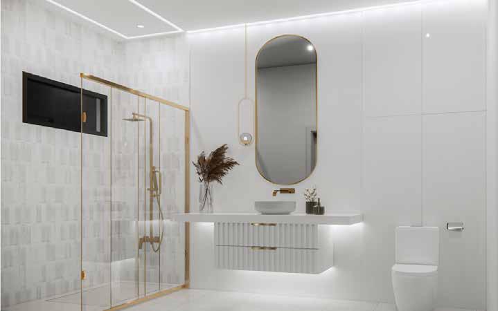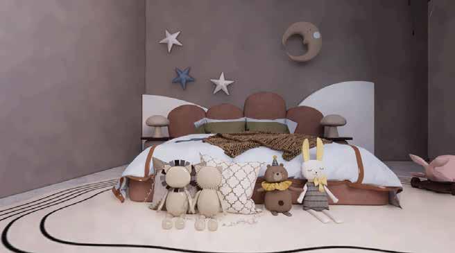 A key requirement was the creation of dedicated, highly functional spaces for different family members; this is exemplified by the charming children's room, which features a playful star-and-moon theme with custom bedding and decor, providing a nurturing and imaginative environment. Furthermore, the project includes a luxurious "master bedroom" designed as a private retreat. This suite features a sophisticated bedroom with vertical wall paneling and a spa-like en-suite bathroom defined by high-end material contrasts, including large-format gray stone-effect tiles paired with a striking dark herringbone feature wall in the shower zone, ensuring a perfect balance of family connectivity and personal sanctuary.