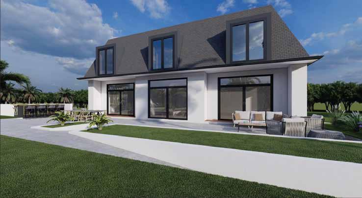 Each unit is designed with its own private entrance and dedicated outdoor living space, including a covered patio area that seamlessly extends the interior lounge to the garden. The layout prioritizes functional simplicity, with integrated garages and low- maintenance landscaping that wraps around the property to unify the two dwellings. By balancing shared architectural language with independent living zones, this project provides a sophisticated solution for modern dual-family occupancy in a suburban UK context.