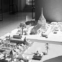 The upper part of the structure collapsed after an earthquake, so this model shows the predicted original form of the chedi.