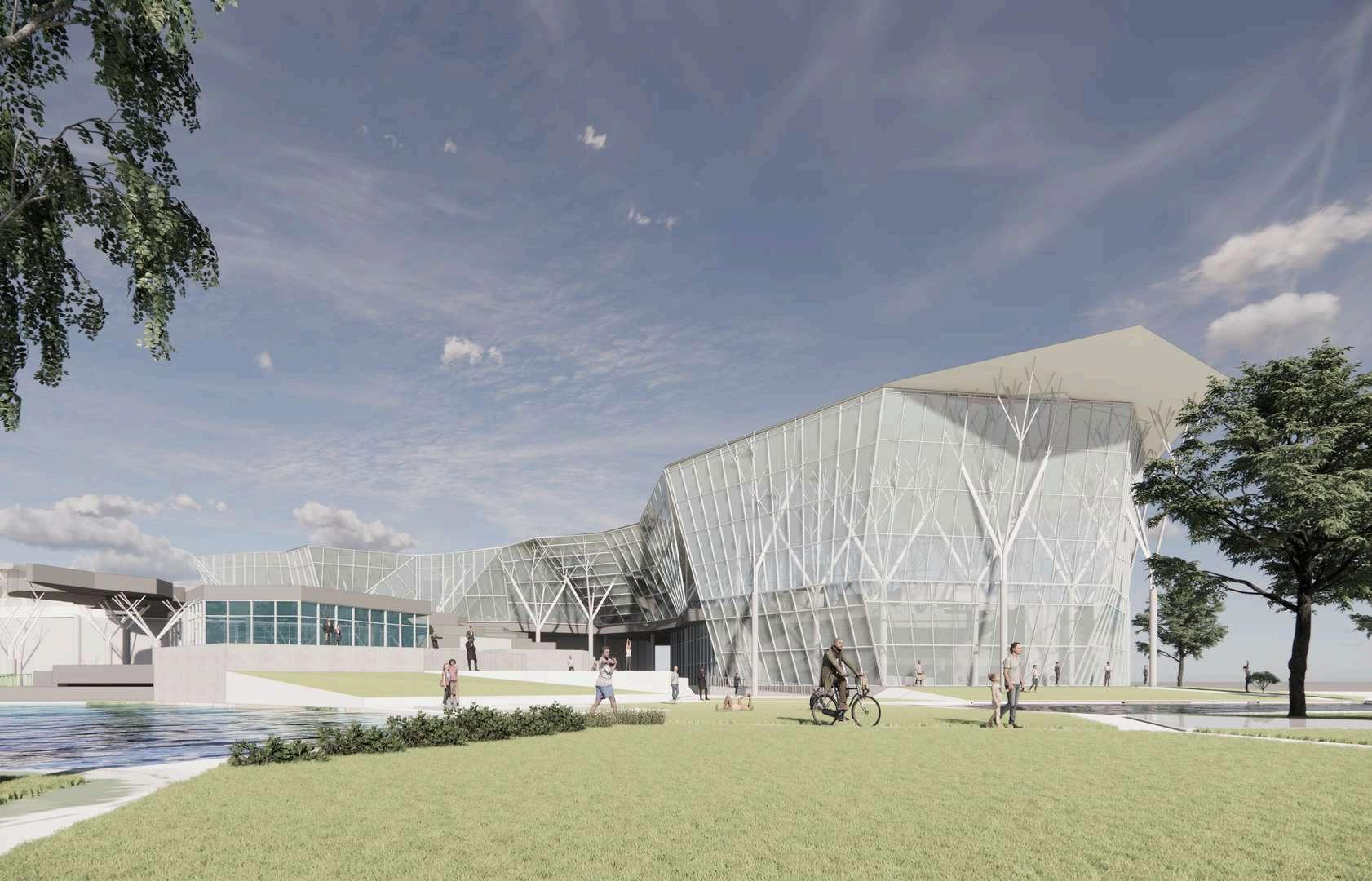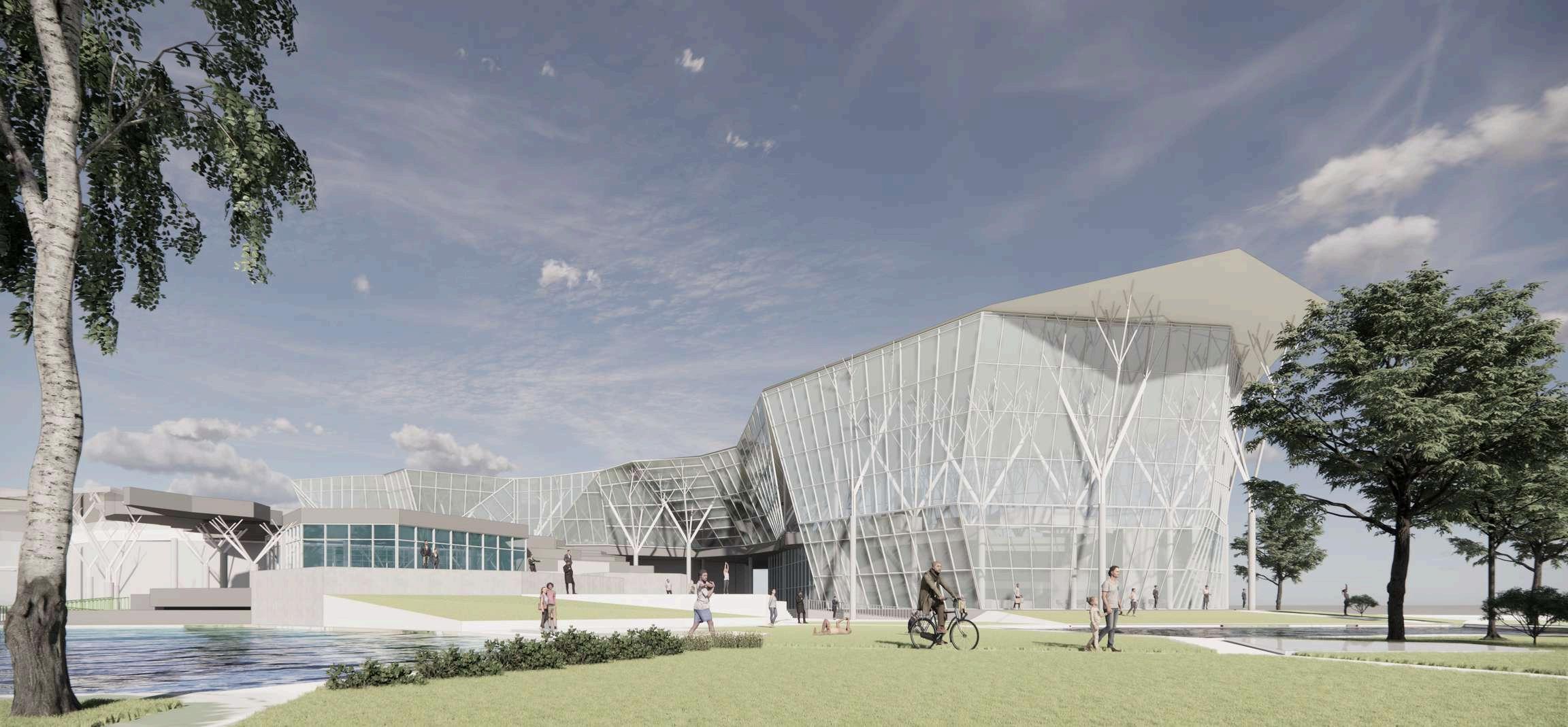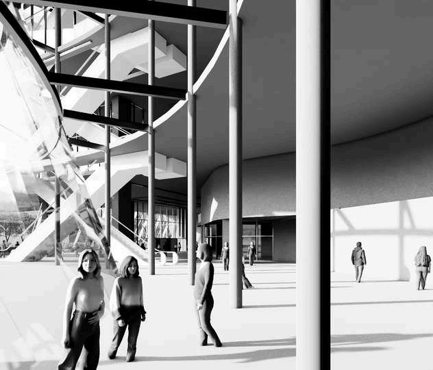 Extending the mass toward the plaza like reaching branches, creating a space that feels both inside and outside