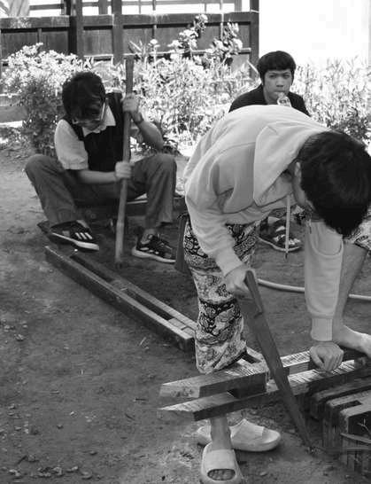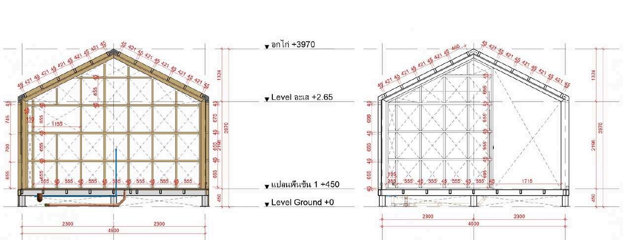 For this year, we designed a pavilion that can be disassembled and rebuilt, supported by metal parts for flexibility. Because of the limited budget, we chose to let the materials reveal their natural texture and tone Once it has served its purpose at the graduation celebration, we will reconstruct it into a playground for children in a remote area It will be given to a preschool in Chiang Rai to provide a space for play and growth.