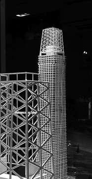 A small study model of The Exchange 106 in Malaysia, showing the detailed steel structure at the tower’s crown.