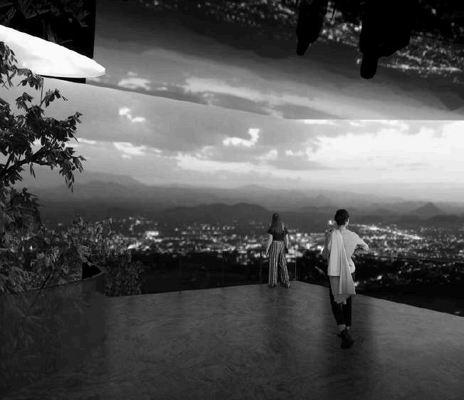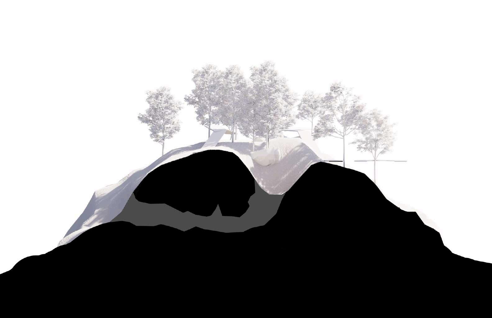 The pavilion project starts with choosing a place and using the senses to notice its natural conditions such as the sound of leaves brushing together and the contrast between bright and dim areas shaped by tree shadows These sensations are then translated into architecture. This design reflects the cave opening and city scenery found at Phu Bo Bid, expressed through light.