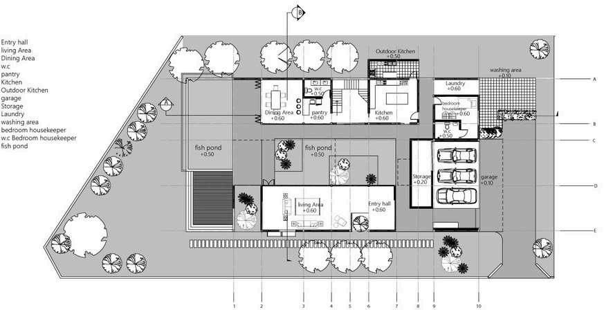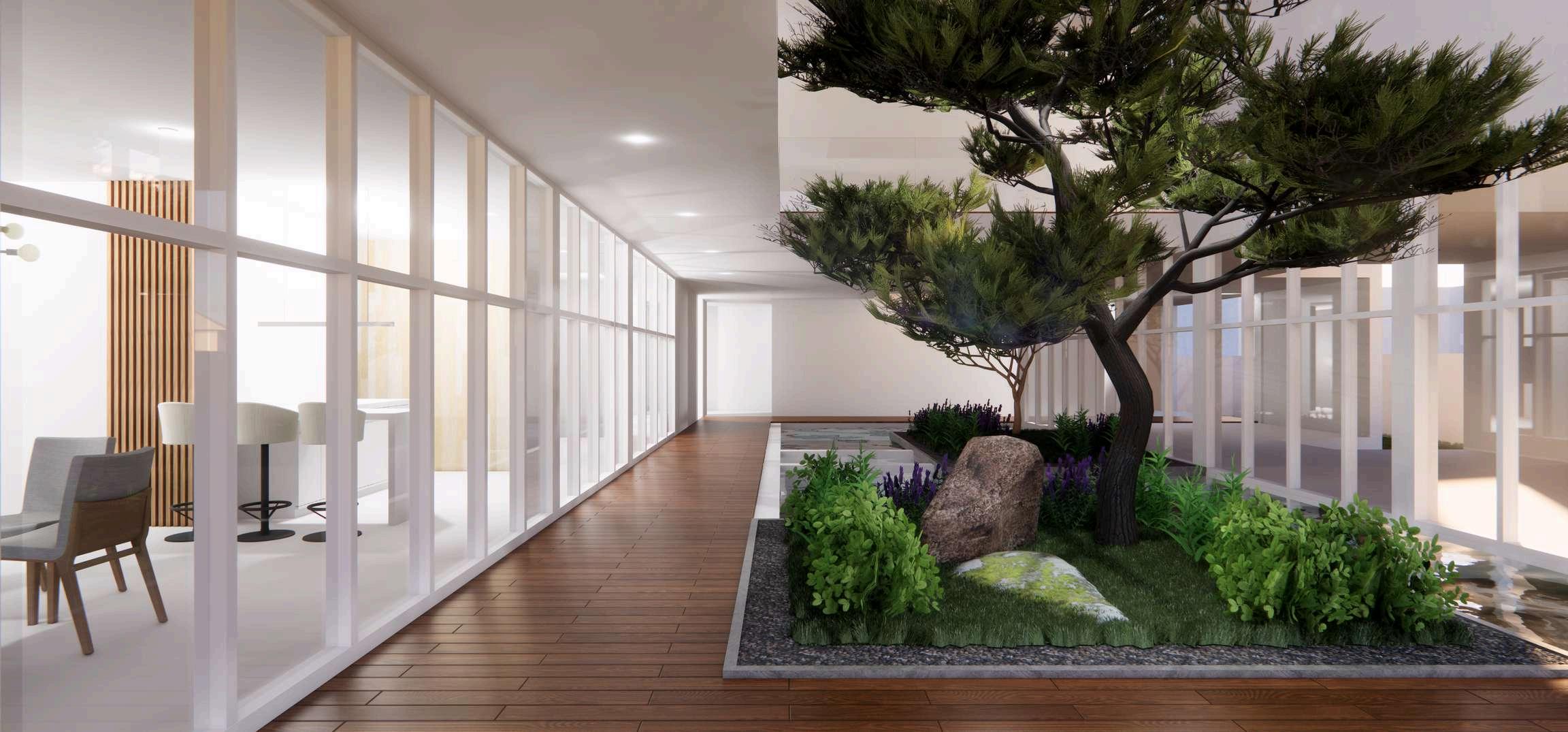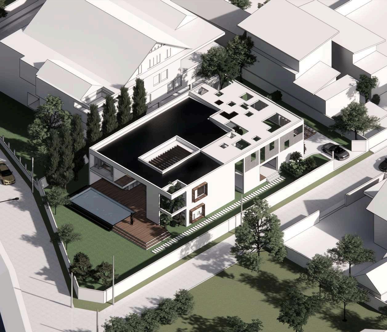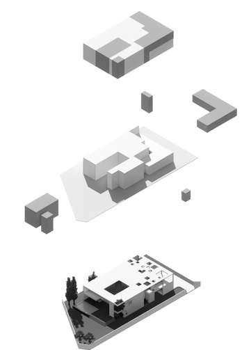 First home project for a family of five parents, a daughter, a son, and one housekeeper living in the Muang Thong Thani area The design develops from exploring shape‐altering terms, using “Subtrac” to cut, carve, or remove parts of the mass while keeping enough form to show its original outline The carved areas become green spaces that bring openness, natural light, and better airflow into the home.