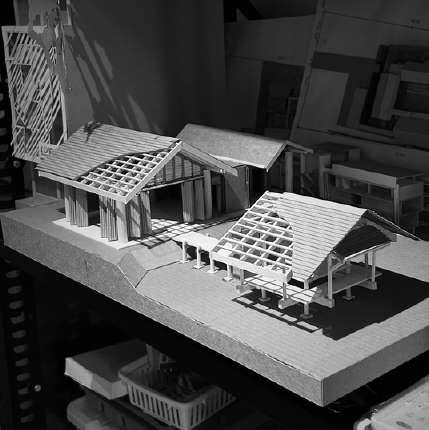 A wooden house and riverside pavilion model showcasing the cutaway structure that highlights the core of timber architecture This project was created during my internship