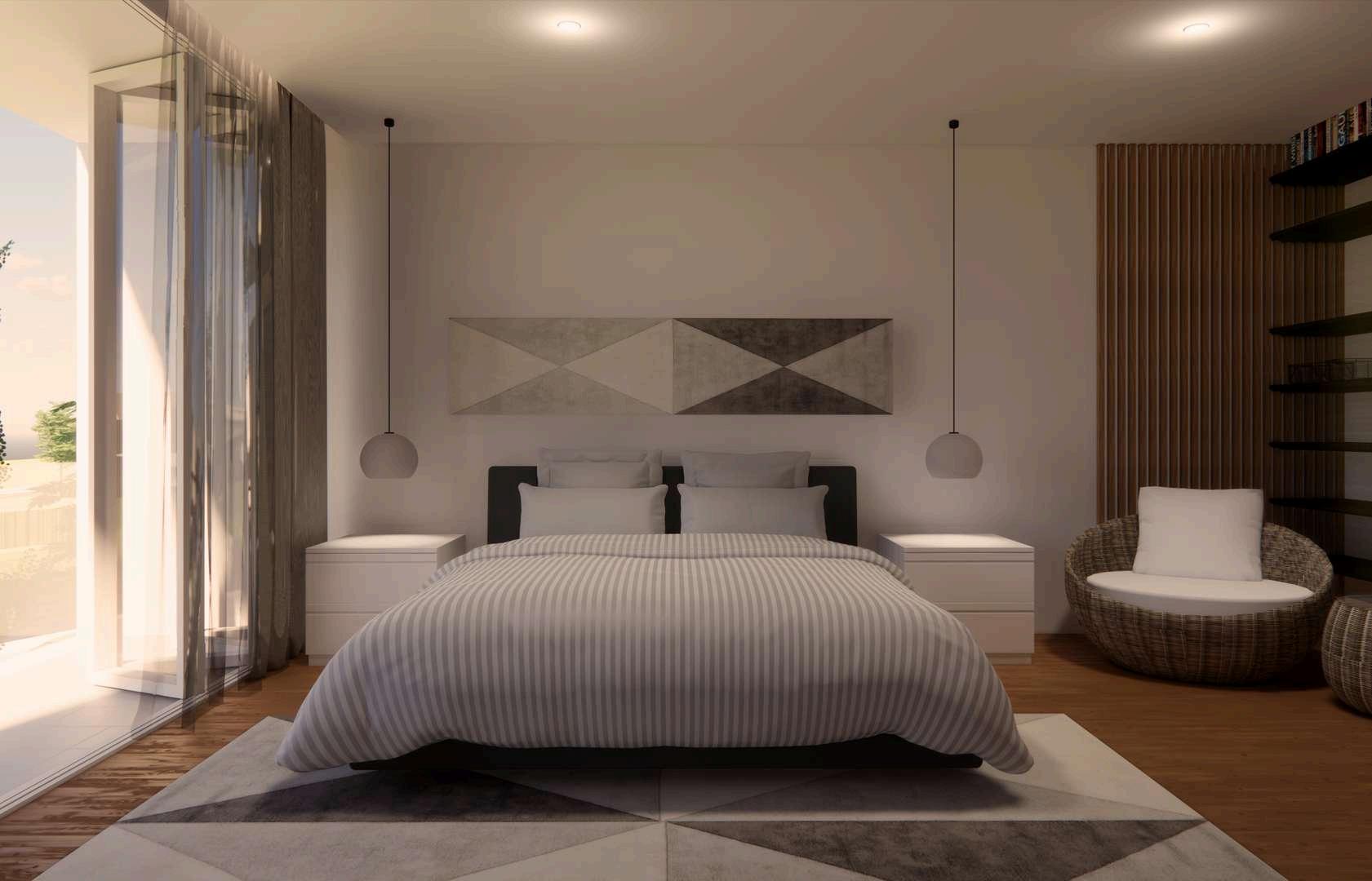 After parking, you enter the main hall that opens to a central courtyard with a garden and a pool, bringing a fresh and calming feel to the home
