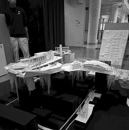 I built my biggest model from paper and balsa wood, measuring around 2.4 x 2.4 meters. It was created for the WHITE LINE project, an architecture concept at a city scale With help from friends, the project turned out well.