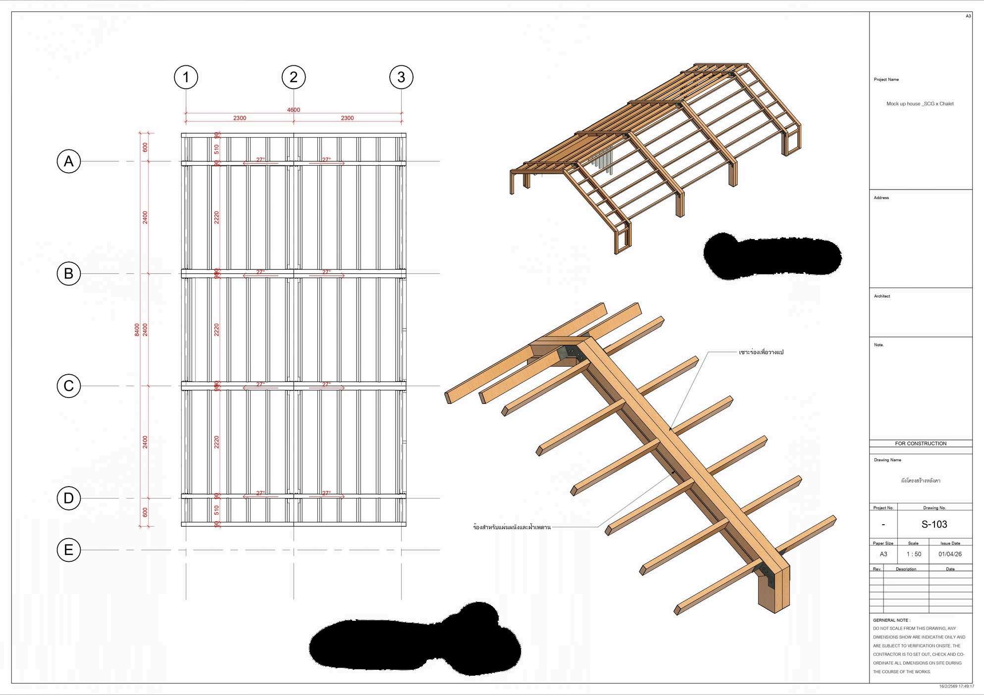 ey wooden house was a de my research I worked and joints through a BIM omponents and drawings s designed for simple ort with a prefab system, ustomised to each client's