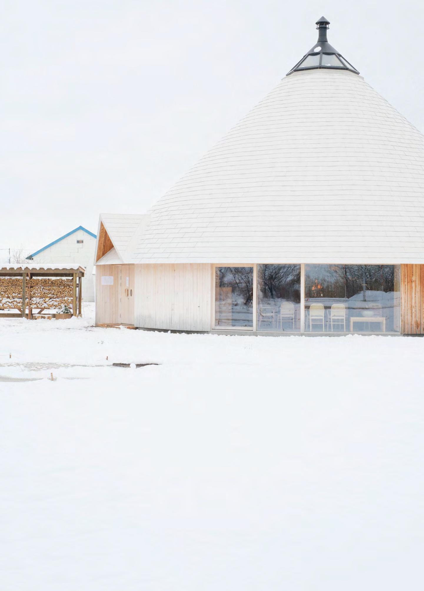 森林資源の循環利用率 地域社会に根ざし、 循環型の施設を目指すため、すべてを開いた「み んなの工場」。その敷地内に森のことを大切に想 う人たちが手がけたレストラン「MORISHIRO」。 シンボリックな円形の建物のうち木造部分63.17 ㎡に北海道産のカラマツを使用。家具にはイ タヤカエデ、バックルームにはトドマツなどが 使われています。どれも森の持続性に配慮し た活動をする木こりから直接購入し、どこから 来た木材か分かるものばかりです。