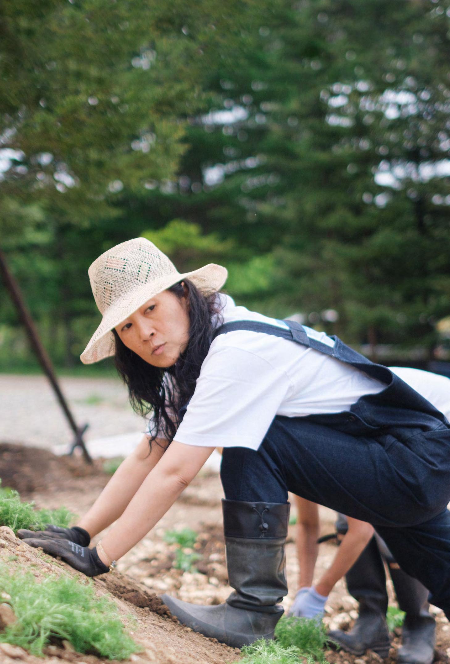 「室松ファーム」に続いて、1989 年に室松敏雄が創業したのが「株式会社 ローレル」です。SHIRO のファウンダーであり、ブランドプロデューサーを 務める今井浩恵は、短大を卒業した1995 年に入社しました。室松ファームの 繁忙期に農作業に駆り出された今井は、畑にすっと溶け込み、生き生きと土 と戯れました。都会育ちの同僚たちが戸惑っていたのとは対照的です。母屋 から畑へ向かう小路の脇に生い茂るハーブの香りを嗅いだり、畑で育ったア スパラを収穫して美味しそうに食べたり。今井はこの時点ですでに自然と近 い距離で関わることを知っていました。