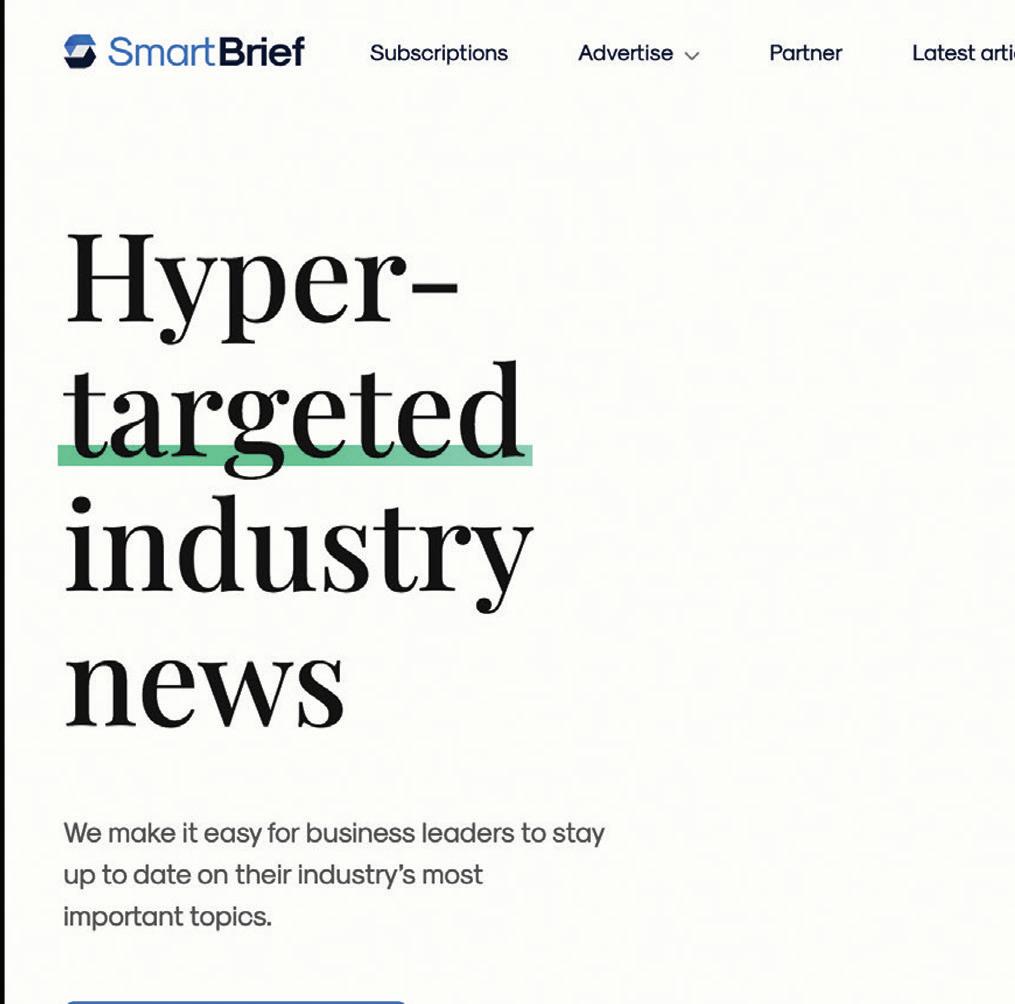 SmartBrief's mission is to equip B2B marketers, trade associations and influential professionals with the technology, content and data they need to succeed. We offer unparalleled targeting ability to reach a soughtafter audience of decision-makers.