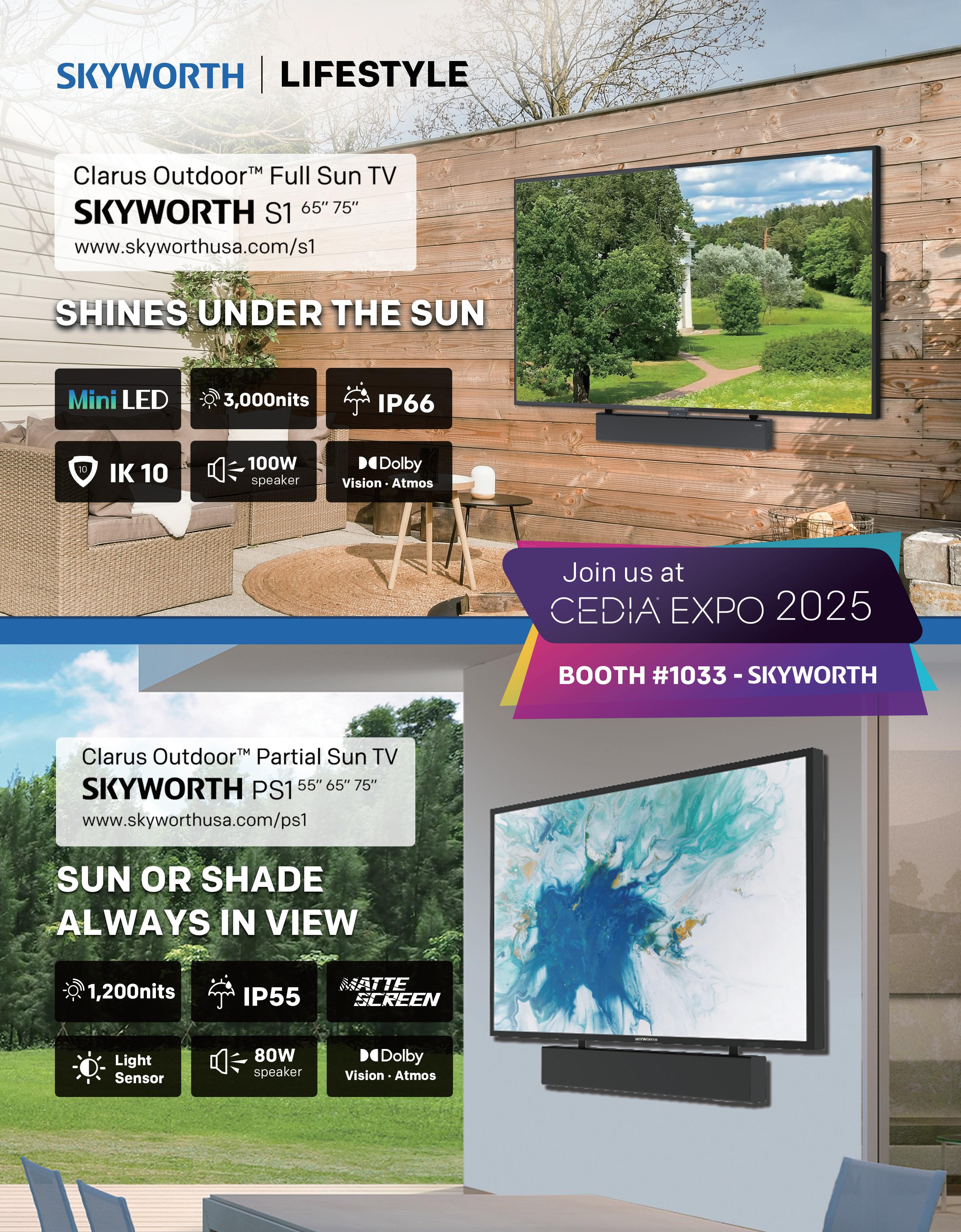 BOOTH 1512 ADI | Snap One’s SunBrite Solis Outdoor 4K Smart TV Series models are engineered for placement in direct sunlight, designed to deliver enhanced image quality, better durability, and improved connectivity.