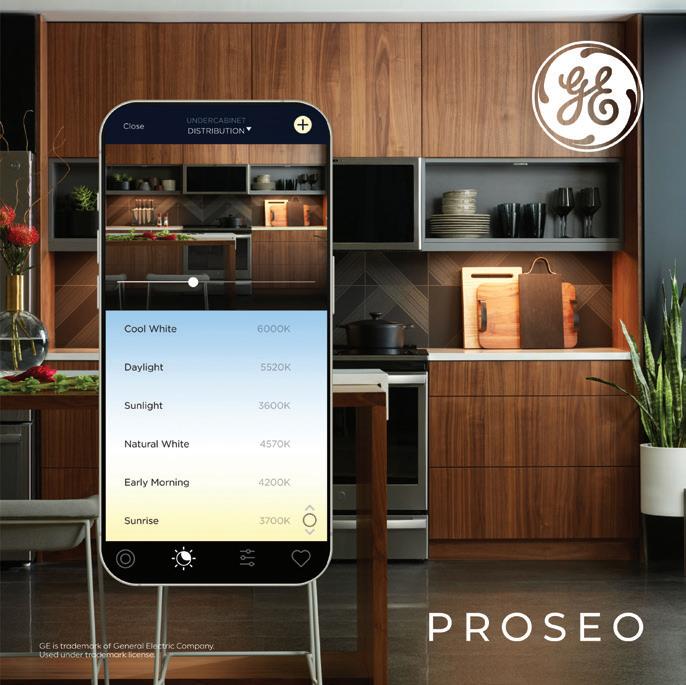 SAVANT, BOOTH 2519 Savant is introducing GE Proseo Undercabinet Fixtures, a specification-grade lighting solution engineered to deliver evenly distributed light onto the surface of the countertop while working seamlessly within Savant’s smart home ecosystem. GE Proseo Undercabinet Fixtures will be available this month. Available in 12-, 18-, and 24-inch lengths, GE Proseo Undercabinet Fixtures feature a slim, edge-lit profile and glare-reducing prismatic optics that evenly distribute light on the surface of any countertop without the glare or hot spots typical of most undercabinet or linear tape lighting. The beautifully diffused pools of dimmable, tunable white light and RGB colors elevate any space, and for every occasion, with functionality and style.