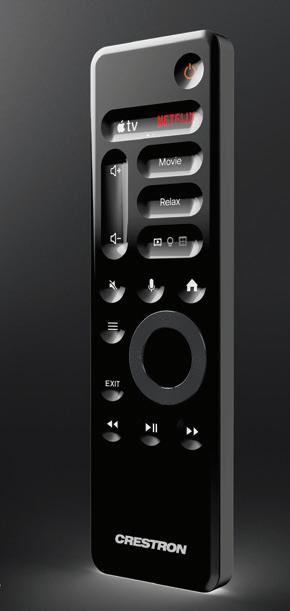 BOOTH 1901 Experience the epitome of smart home control with the Crestron Cevo Mini Remote. Designed with premium materials the remote brings intuitive control to any room. Its sleek metal profile, seamless glass panel, and soft matte back exude luxury, while the ergonomic design ensures comfortable handling. Beyond its elegant aesthetics, the Cevo Mini offers unparalleled personalization. Customize interactive touch zones to command lighting, shades, scenes, favorite rooms, and multi-room audio, tailoring the experience to