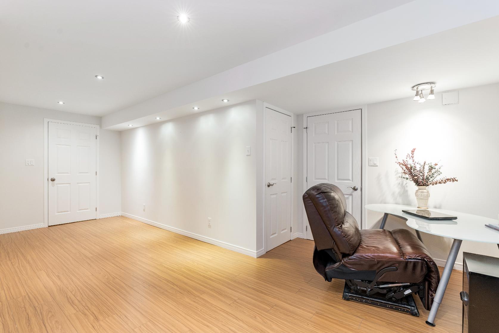 The bright and spaciousbasement addsincredibleflexibility,featuring a welcoming familyroom,a privatebedroom with a semi-ensuite,and a generousoffice spaceperfect forremoteworkorweekend creativity