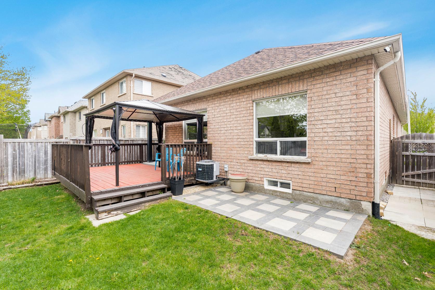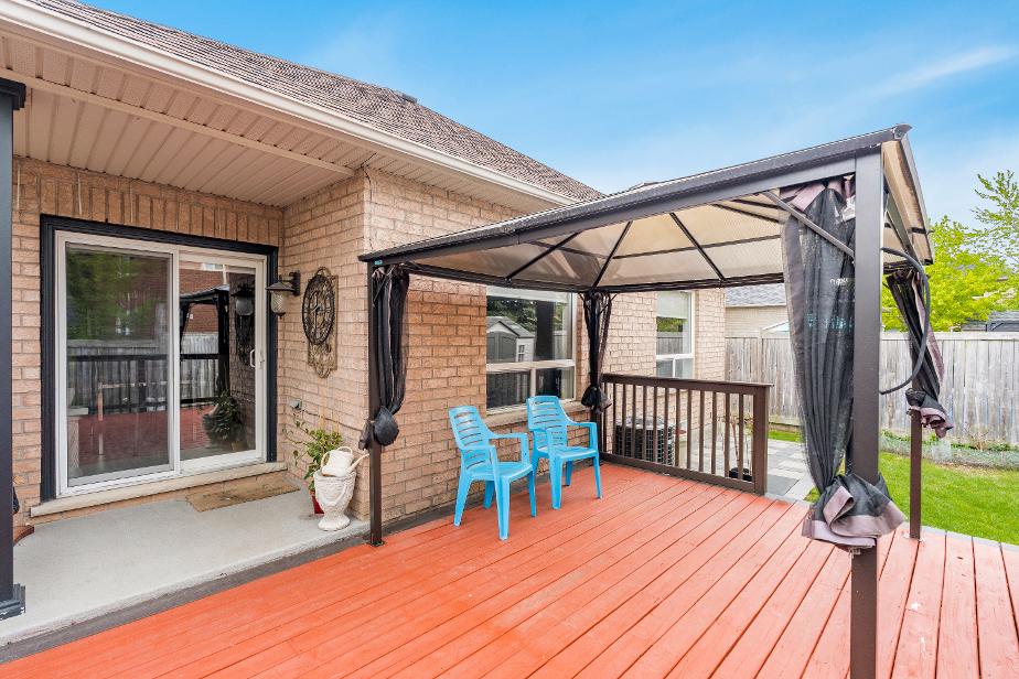 well-sized backdeckwith a gazebo, lush greenspace,and a garden shed forextra storage