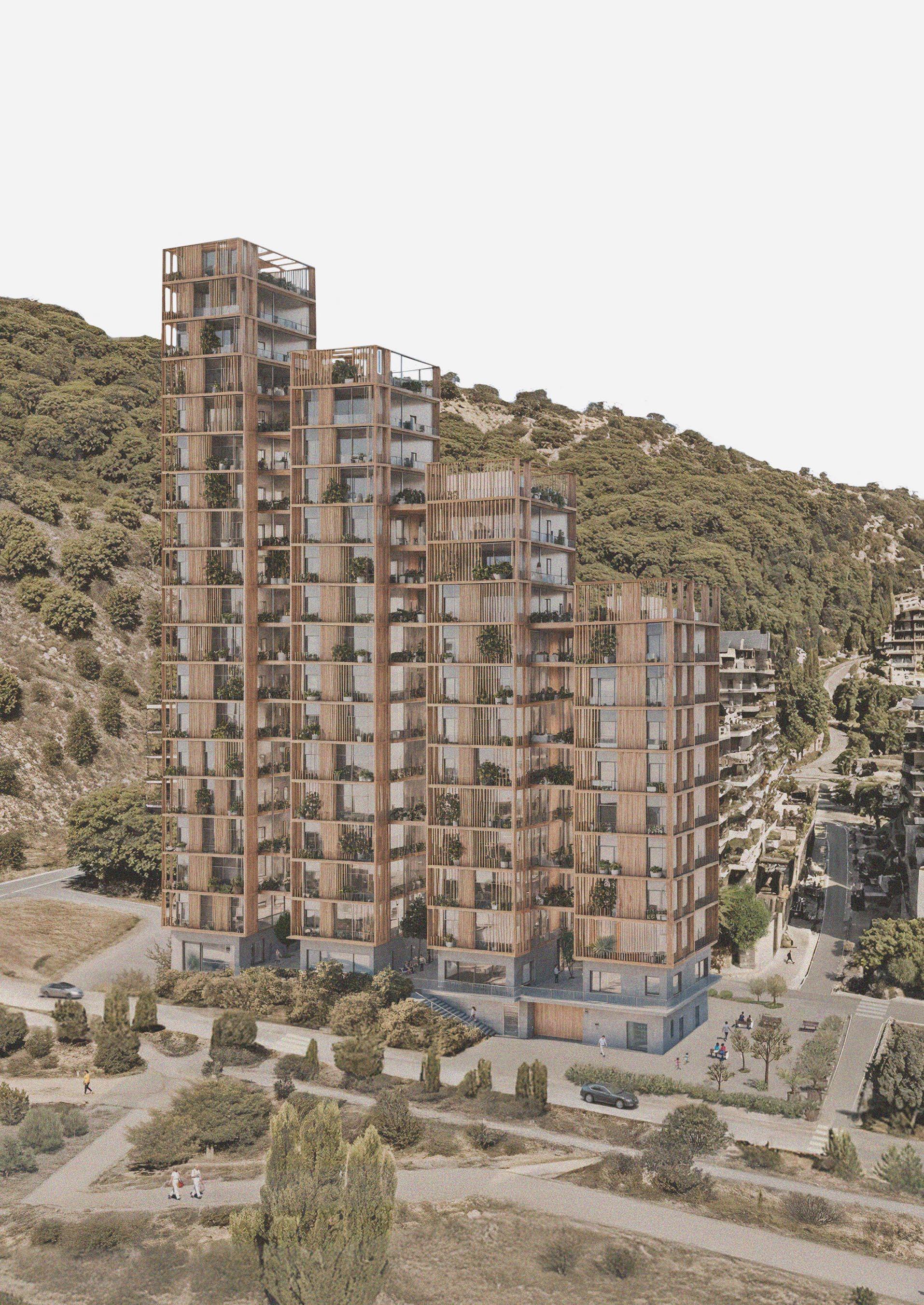 The residential program consist of a mix of 1, 2 and 4 BDR apartments, some with shared living rooms to support small communities or families within the building. In addition, all residents have access to common spaces such as kitchens, a gym, a library, and co-working areas. These shared facilities are designed to strengthen social connections & create a vibrant living environment