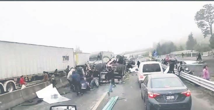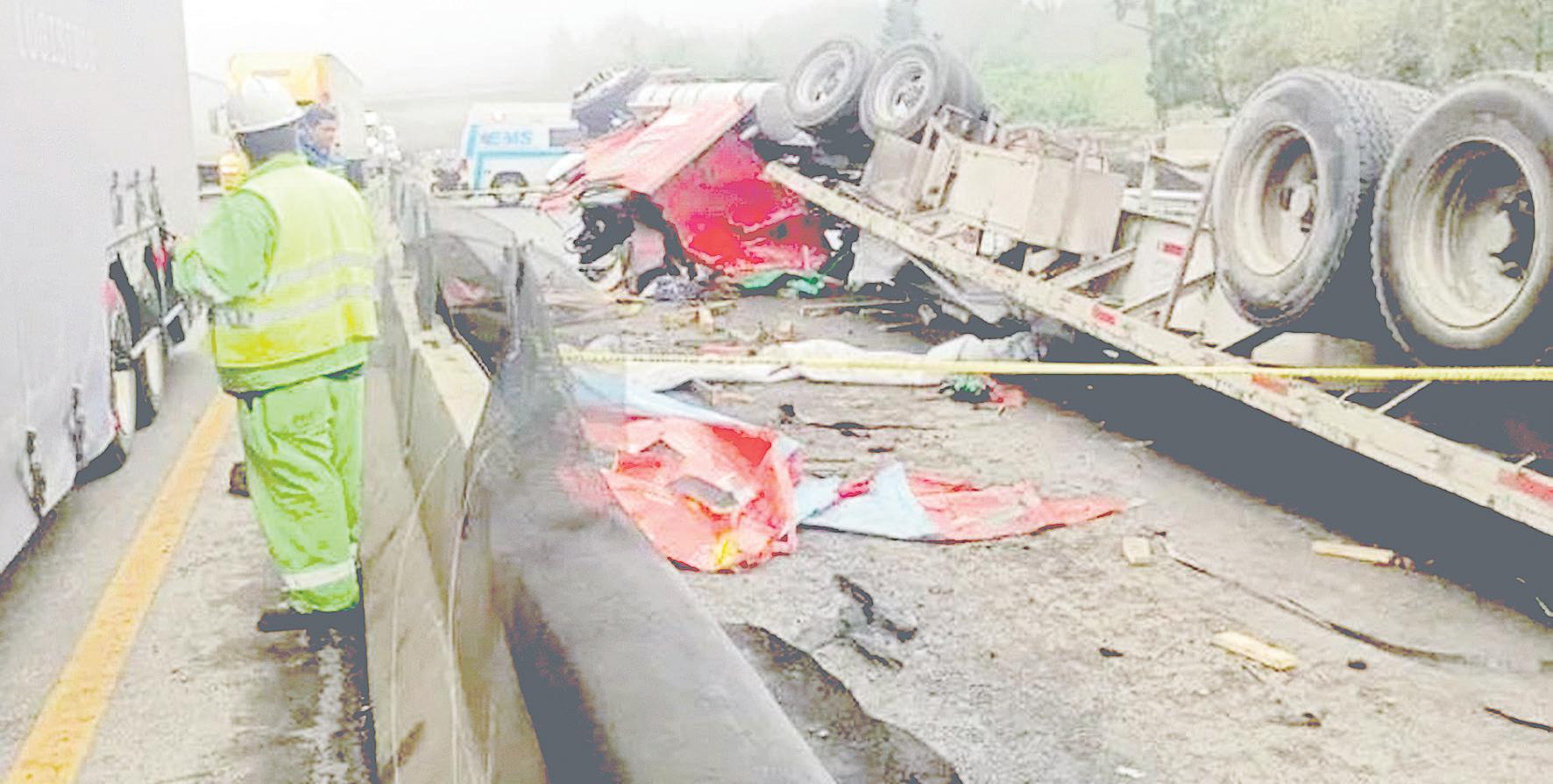 El saldo del accidente fue de dos personas muertas, aparentemente padre e hijo, quienes quedaron atrapadas dentro de la cabina del tractocamión.
