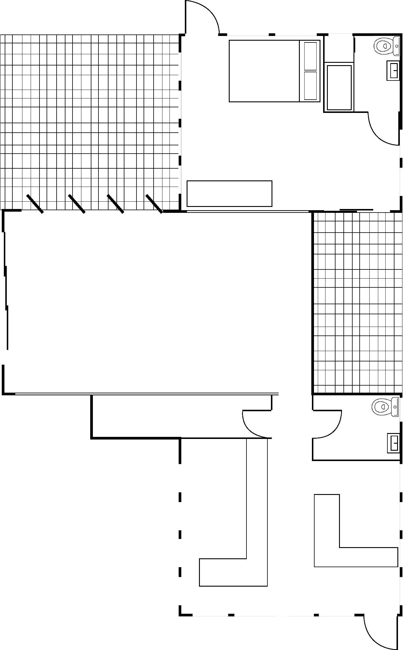 In my approach I decided to focus on symmetry while including elements like the specific doors and construction mannerisms for the concrete walls. The space was designed to hold staff and patrons in a public reception/ gallery space while also having a staff bedroom for site caretakers.