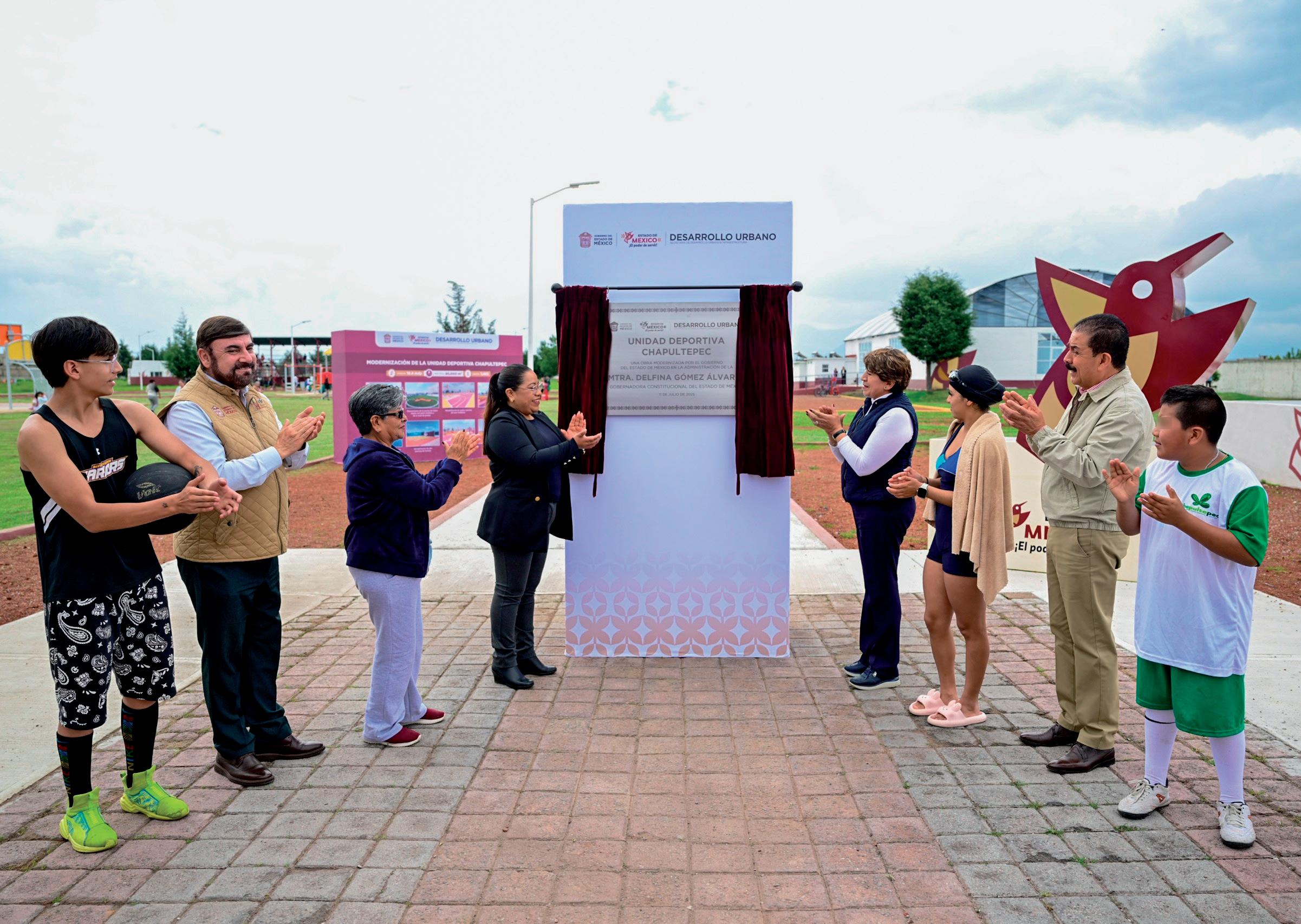 La Gobernadora del Estado de México, Delfina Gómez Álvarez, entregó la Unidad Deportiva de Chapultepec completamente rehabilitada, tras más de 20 años de abandono por anteriores administraciones. La obra se realizó con una inversión de 16.4 millones de pesos y beneficiará a más de 7 mil 400 habitantes de Chapultepec, Atizapán, Calimaya y Mexicaltzingo.