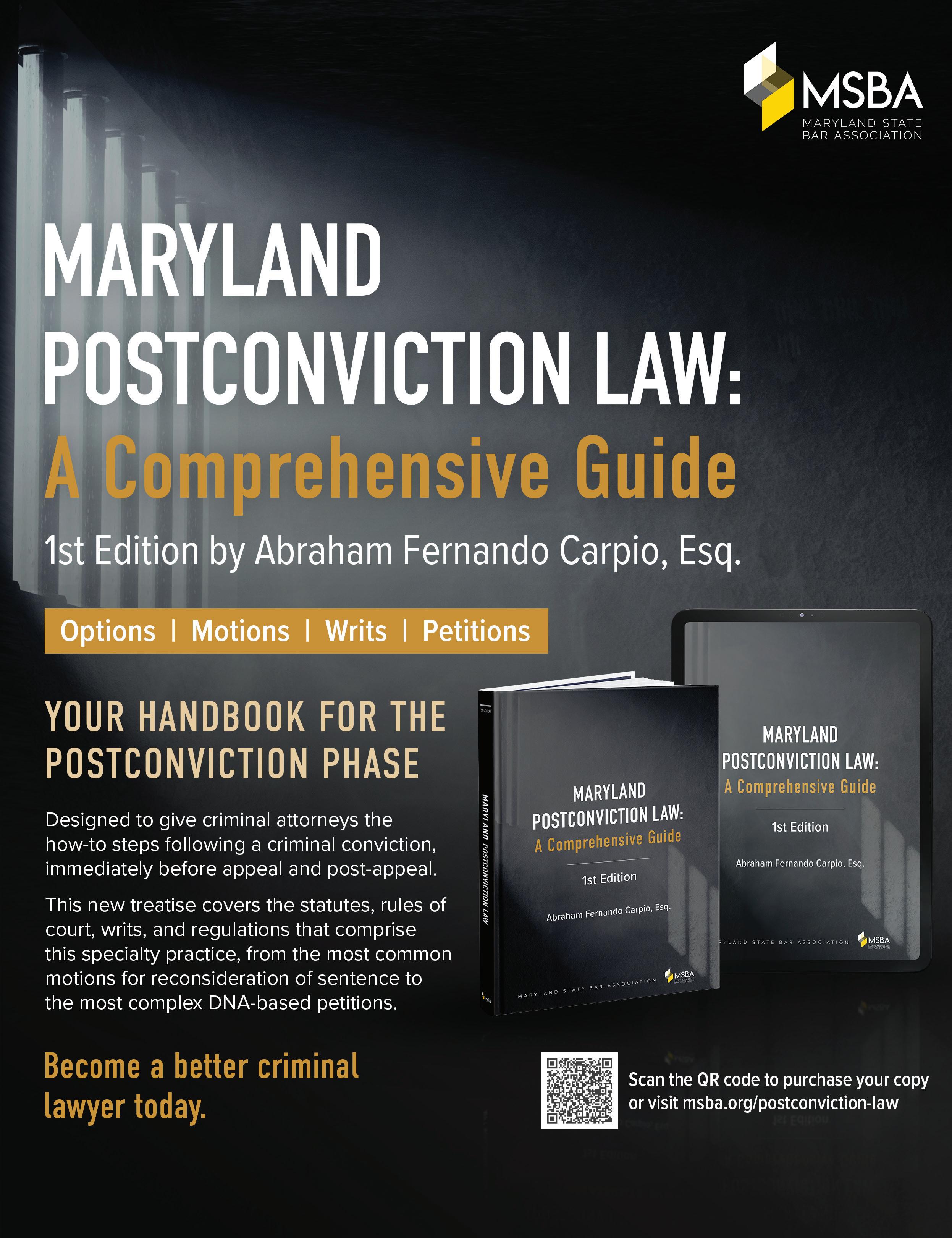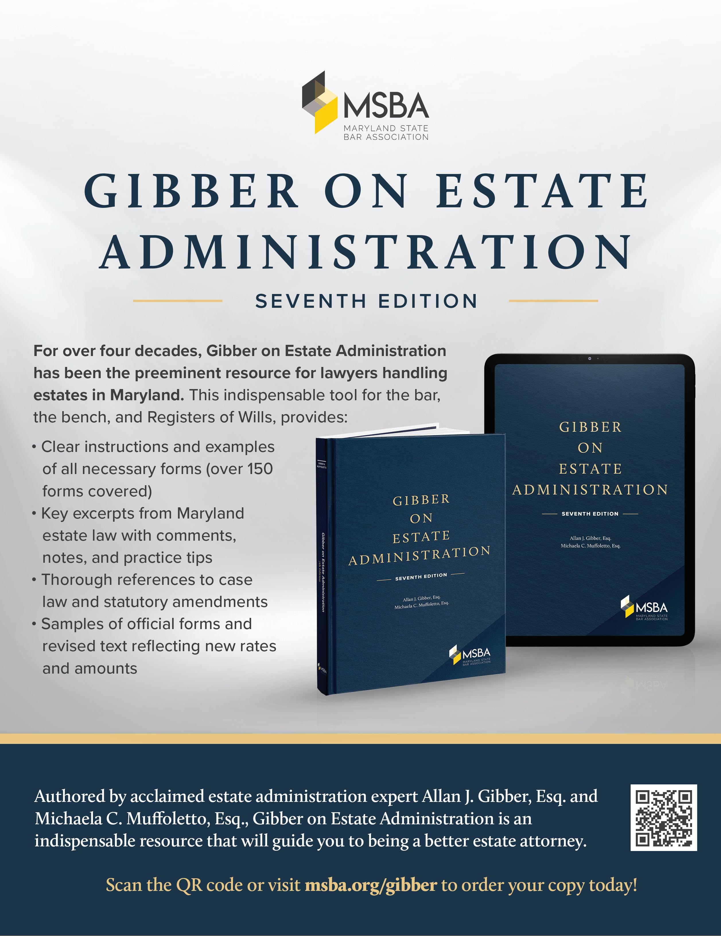 Statements or opinions expressed herein are those of the authors and do not necessarily reflect those of the Maryland State Bar Association, its officers, Board of Governors, the Editorial Board or staff. Publishing an advertisement does not imply endorsement of any product or service offered.