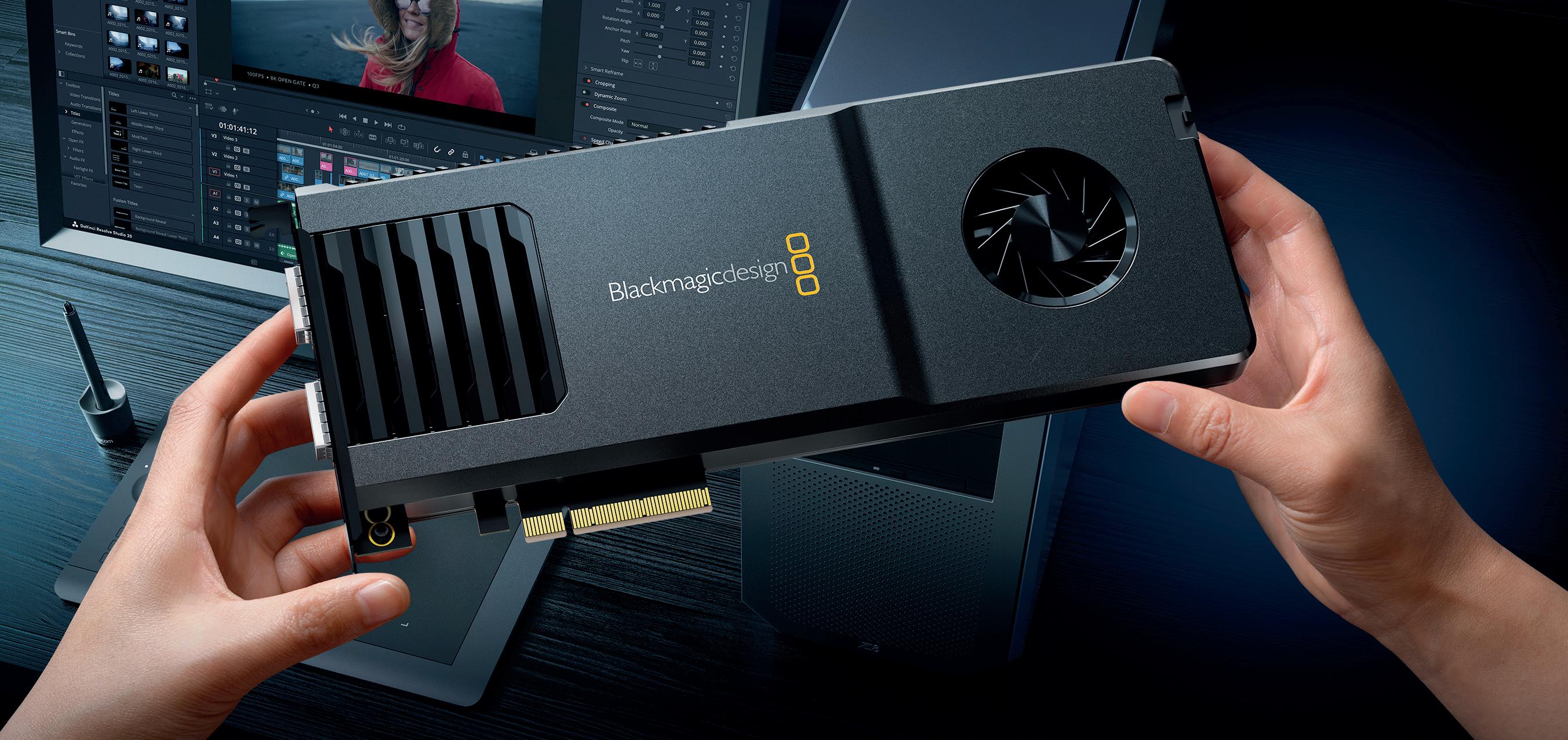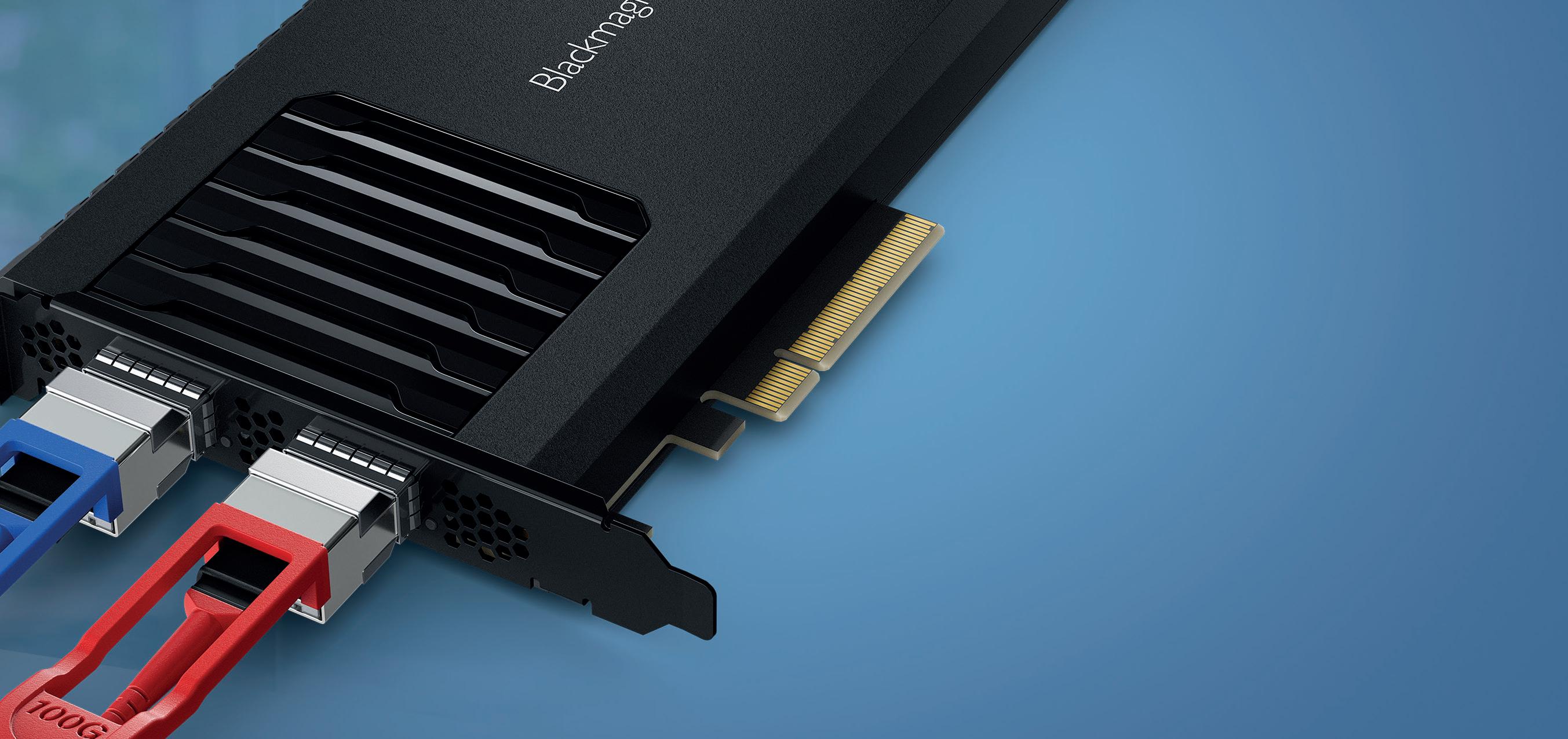 You can even use DaVinci Resolve for 2110 IP based broadcast editing workstations! DeckLink IP 100G features a high speed PCIe connection so it works on the latest Mac, Windows and Linux computers. DeckLink IP 100G also features 2 x 100G Ethernet QSFP ports, providing full redundancy.