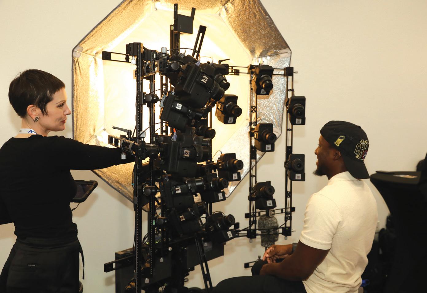 How about a 3D headshot? DeWitt Harris was a willing recipient, thanks to Rachel Lively, a scan technician for BlueVishnu, who unveiled the company’s 3D-scanning technology. ❶ A pair of Millersville University students, Elizabeth Wicht and Gabriel Wolford, check out the controls of the Ross Video TouchDrive production switcher control panel. ❷