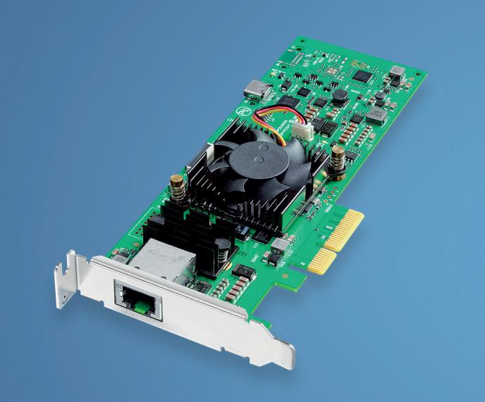 DeckLink IP 100G features a fast connection to the host computer that can handle multiple HD and Ultra HD video channels, as well as simultaneous capture and playback on each of the channels. Only DeckLink IP cards offer such exceptional performance while utilizing a simple and low-cost PCIe card-based design.
