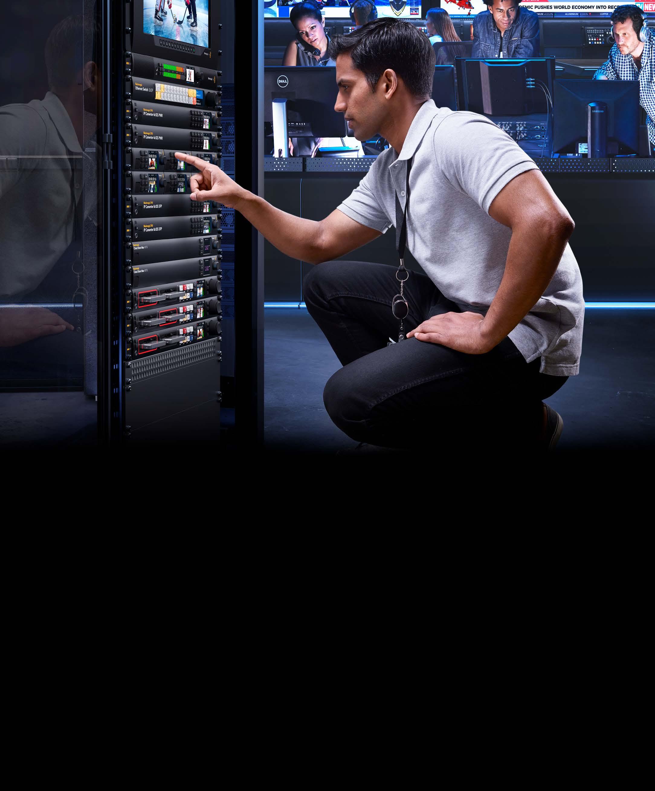 The Blackmagic 2110 IP Converters have been designed to integrate SDI equipment into 2110 IP broadcast systems. The rack mount models can be installed in equipment racks right next to the equipment you’re converting. Simply add a Blackmagic 2110 IP Converter to live production switchers, disk recorders, streaming processors, cameras, TVs and more.