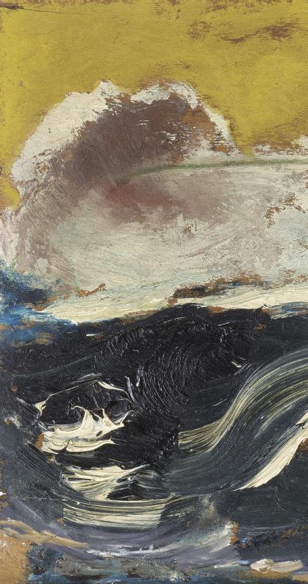 Like lot 38, the present work was painted during the spring and summer of 1892, when Strindberg was staying in Dalarö. He was entirely focused on capturing the landscape, and his paintings are largely sky and water, with the occasional buoy or lighthouse thrown in as his inspiration dictated. During this time, the artist painted the sea on calm days as well as in full storm, reflecting both sides of his own turbulent personality during this difficult time.