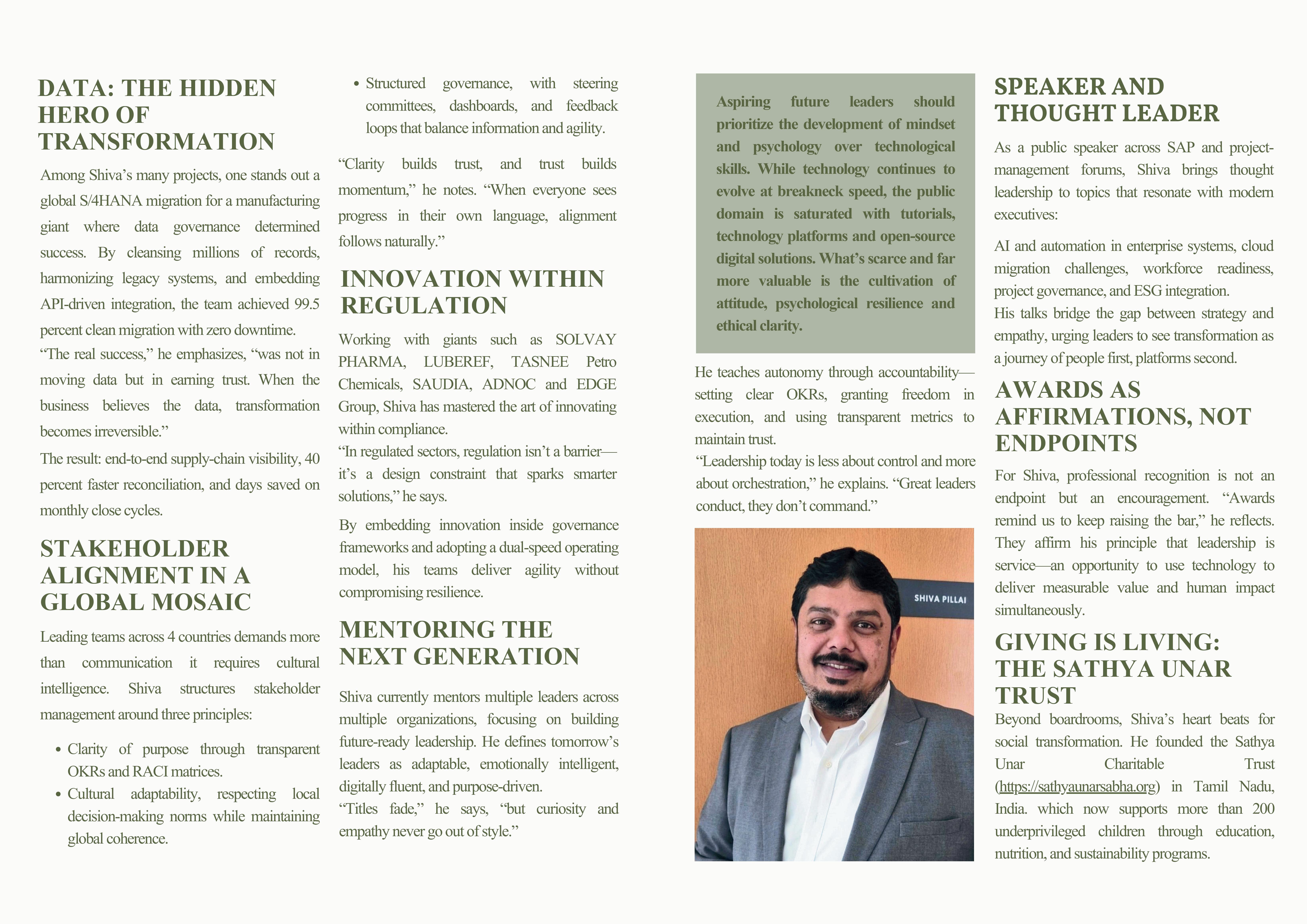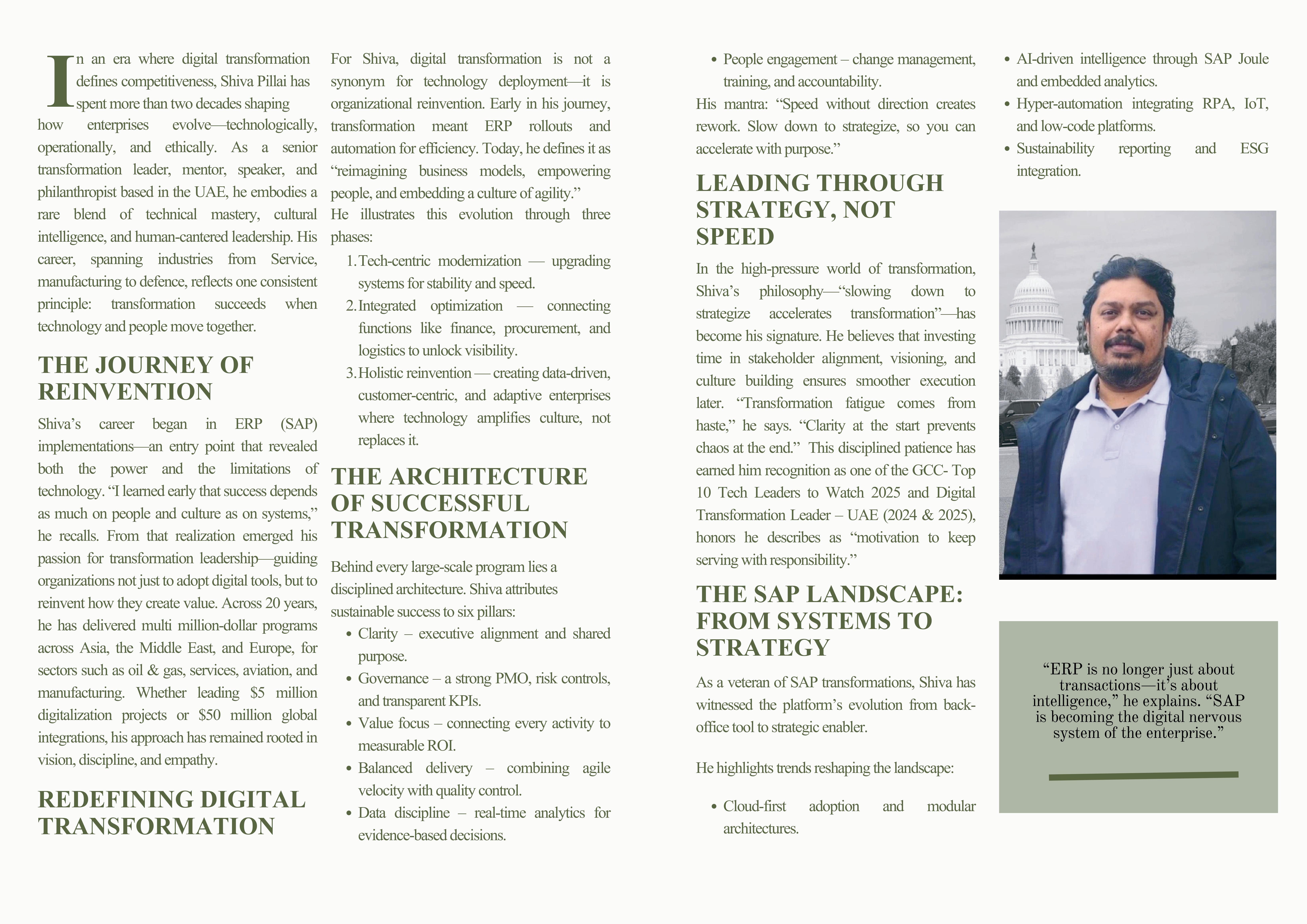 Hebelieveseffectivechangeleadershiprequiresco-creation andpsychologicalsafety.“Whenyouinvitepeopleintothe process,youbuildownershipandresilience,”hesays.