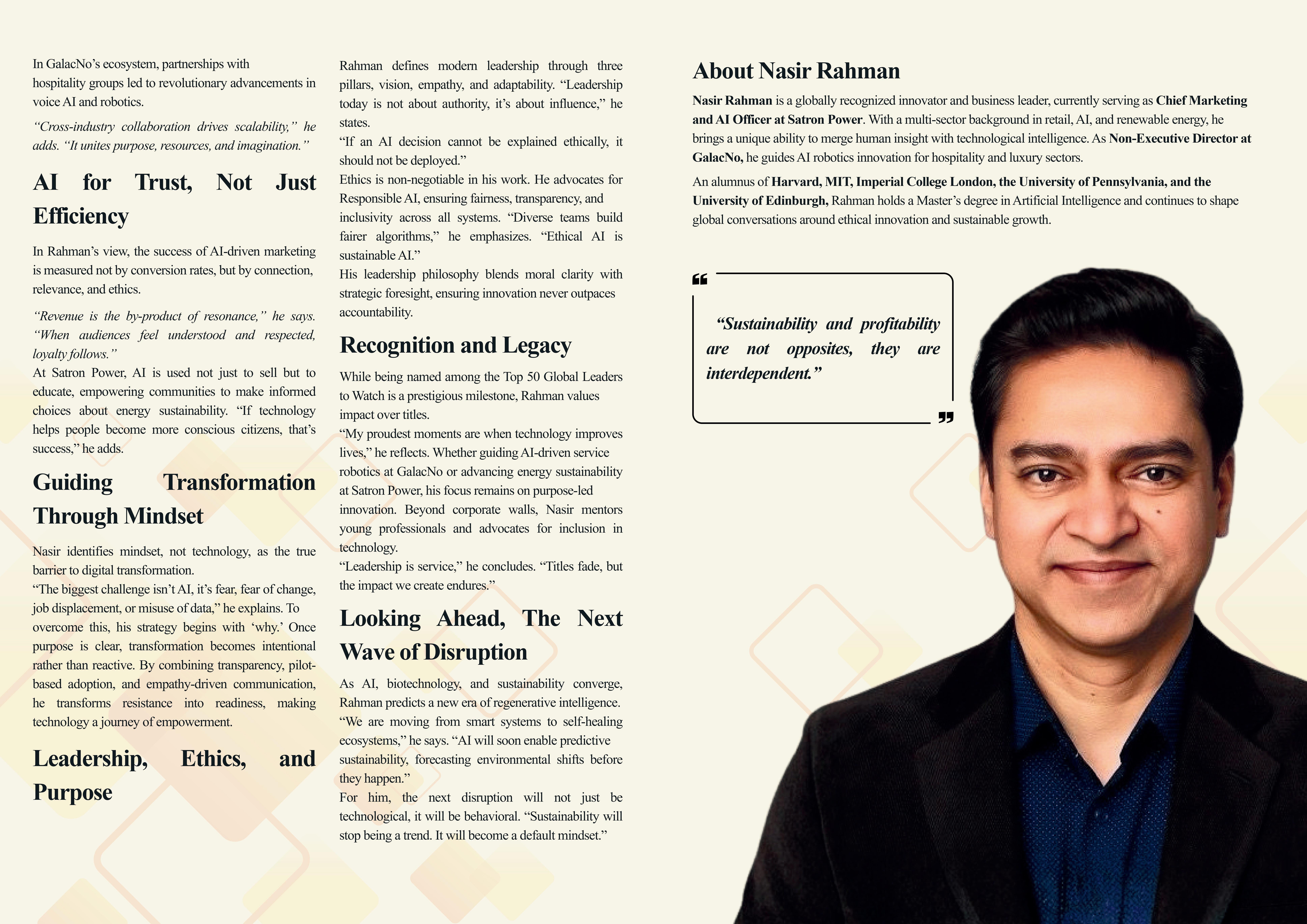 He defines leadership at Microsoft as stewardship— ensuring that every advancement is built responsibly, inclusively, and with empathy. “Innovation without accountabilityisjustnoise,”headds.