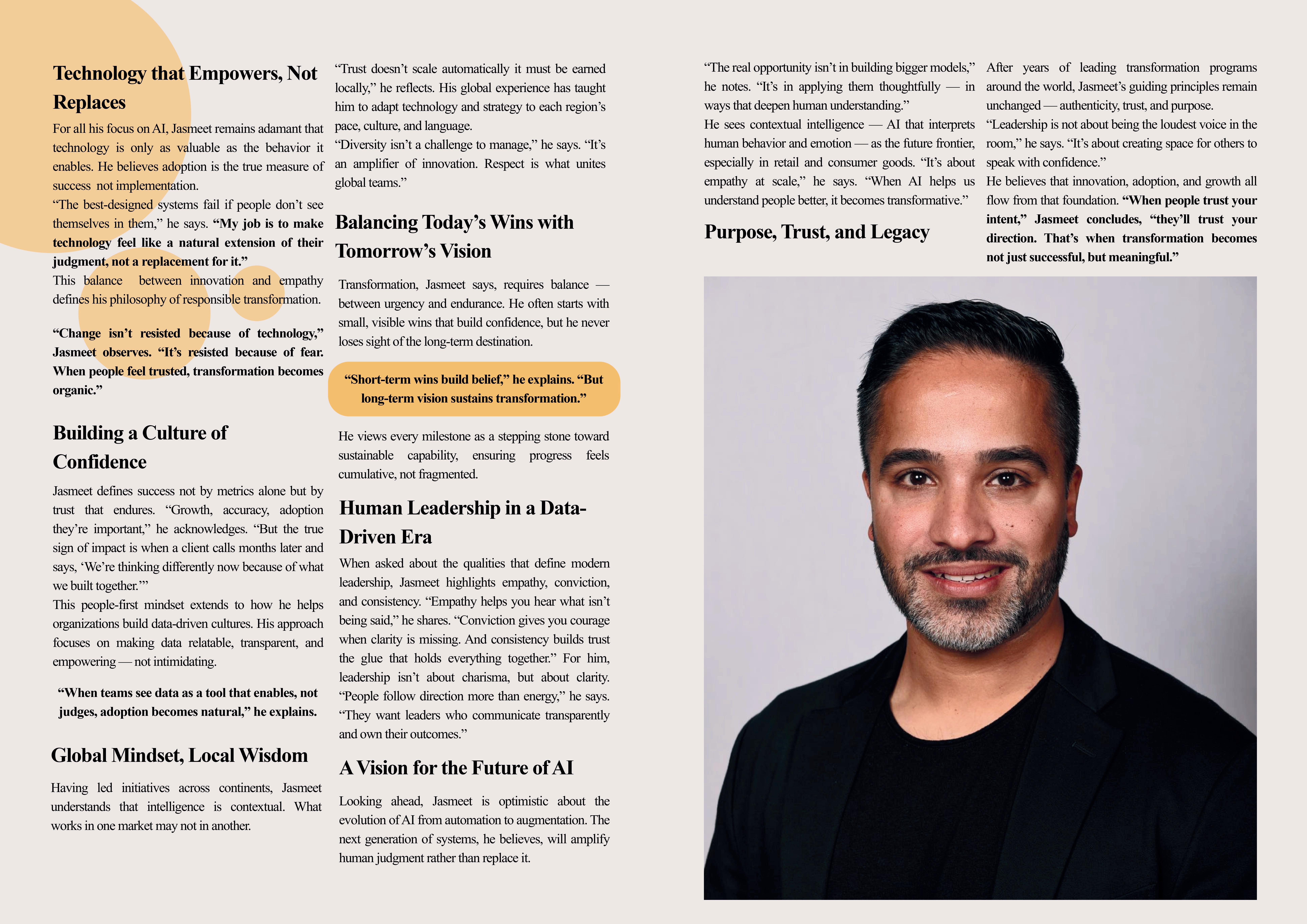 “Purpose defines why we build; trust determines whether people will use it,” he explains. “Responsible AI design and transparent communication are essential. Without trust,eventhemostadvancedtoolsfail.”
