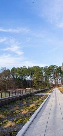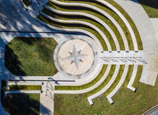 The 100-acre corporate campus for The Inspiration Network includes a fiveacre manmade lake and a 5,000 square foot reflecting pool that spills into an intimate baptismal. The site reflects the work of The Inspiration Network and inspires employees and visitors alike with intimate gardens and a large open lawn at the base of a 100-foot tall, stainless steel cross.