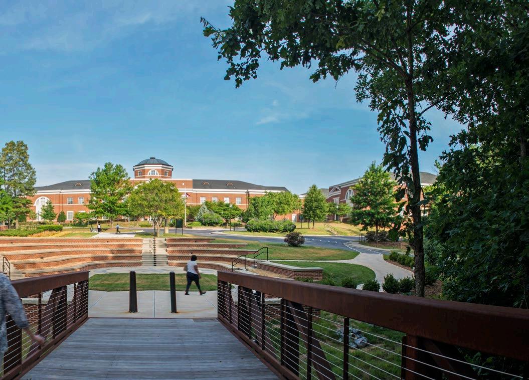 Initially, the Cato Campus, one of CPCC’s most populated campuses, had no place for students to congregate between classes. The addition of the amphitheater as part of the Cato III building creates a space with access to Wi-Fi, plenty of outlets and an abundance of seating for students to relax, recharge or to enjoy the view of the adjacent tree-lined stream.