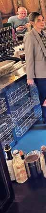 Frisch gezapftes Guiness lässt einen viel leichter werfen, daher versorgen Laura Düser (Solum) und Besa Agaj (IT-BUSINESS) das Team mit reichlich Bier.